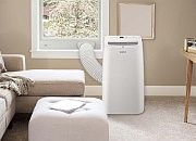 Мобильный кондиционер Royal Clima серии Tesoro, модель RM-TS28CH-E — это ультракомпактный моноблок (всего 22.5 кг) создан для квартир, офисов и дач, где нет возможности устанавливать наружный блок. Мощности охлаждения в 2.79 кВт (990 Вт потребления) достаточно для обслуживания помещения площадью до 20 м². Уровень шума составляет 54 дБ — это средний показатель для данного класса техники. Производитель (бренд итальянский, производство КНР на мощностях TCL Delonghi и Rechi) даёт на устройство гарантию 3 года.