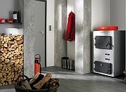 Котел твердотопливный Теплоприбор КС-Т белорусского производства – одноконтурный/двухконтурный агрегат с мощностью от 12,5 до 20 кВт и температурой воды на выходе до 95°C. Он подойдет для отопления небольших частных домов. Устройство функционирует на дровах, но в него также можно загружать брикет, при этом одной закладки хватит не менее чем на 8 часов. Работа прибора обеспечивается естественной тягой, создаваемой дымовой трубой, благодаря этому он полностью энергонезависим. Производитель обещает, что устройство, изготовленное из высококачественной котловой стали, бесперебойно прослужит не менее 15 лет.