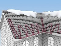 Насколько большой будет обогреваемая поверхность? Это зависит от конструкции крыши, вида ее изоляции и угла ее наклона. Как правило, это протянутая по периметру полоса шириной от 30 до 50 см. По потребности в обогреве все крыши разделяются на три разновидности: