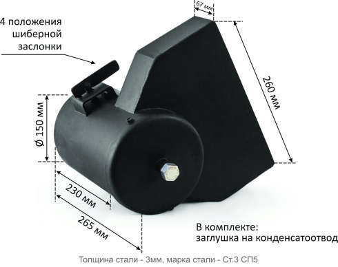 Переходник печной с шибером для КВО "Сибирь-10/15/20 кВт", "Гефест 15/20 кВт", "Магнум 15/20 кВт" служит для: