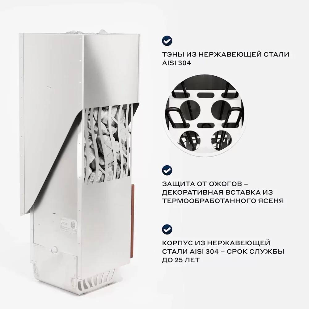 На базе лучших технологий, максимально эффективная, стильная и надежная – эта каменка вобрала в себя самое лучшее.