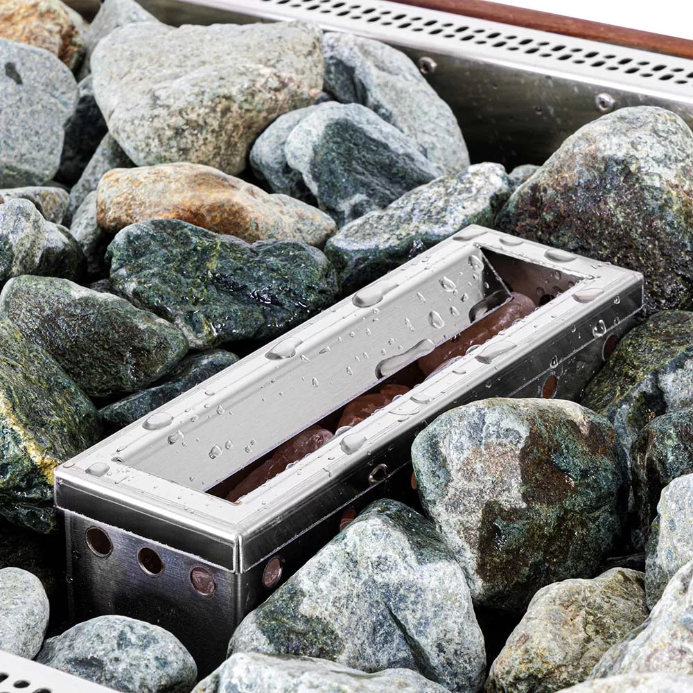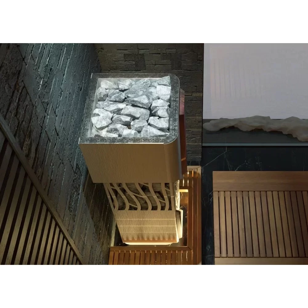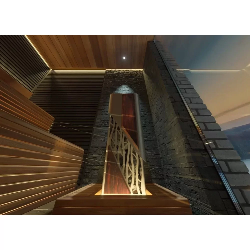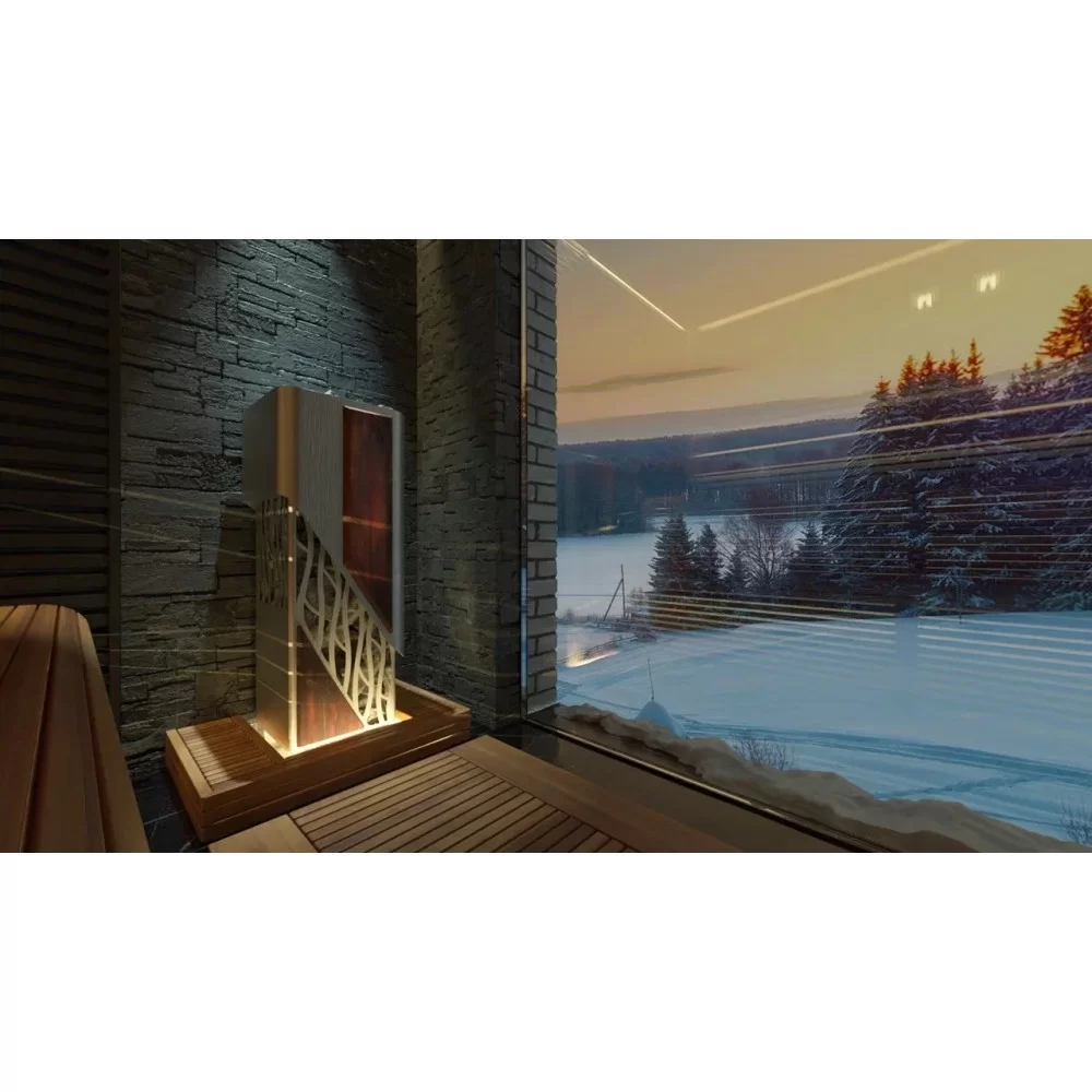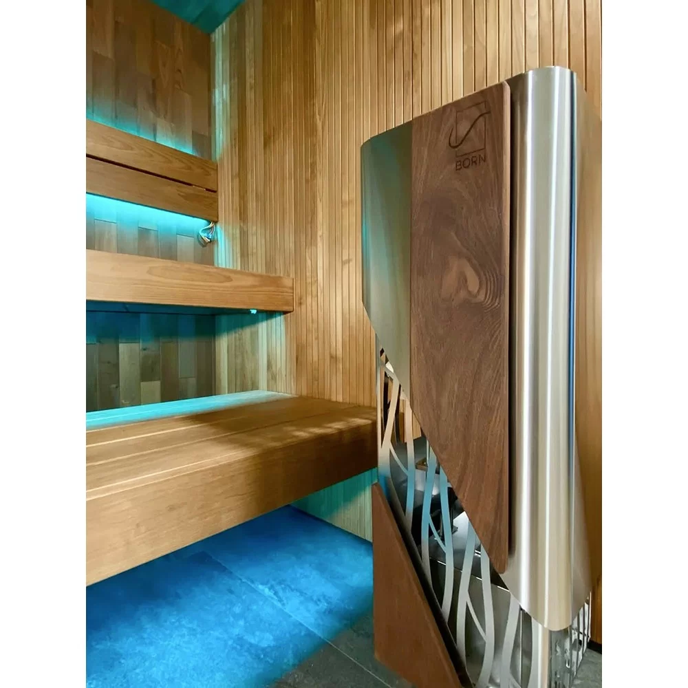 Дизайн этой каменки, как и в случае с BORN® STONE, вдохновлен самой природой. Изящный орнамент на корпусе гармонично сочетается с элементами из термоясеня.