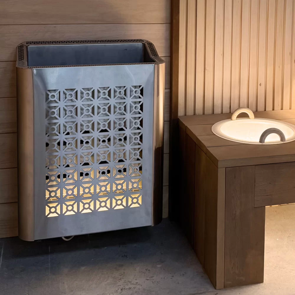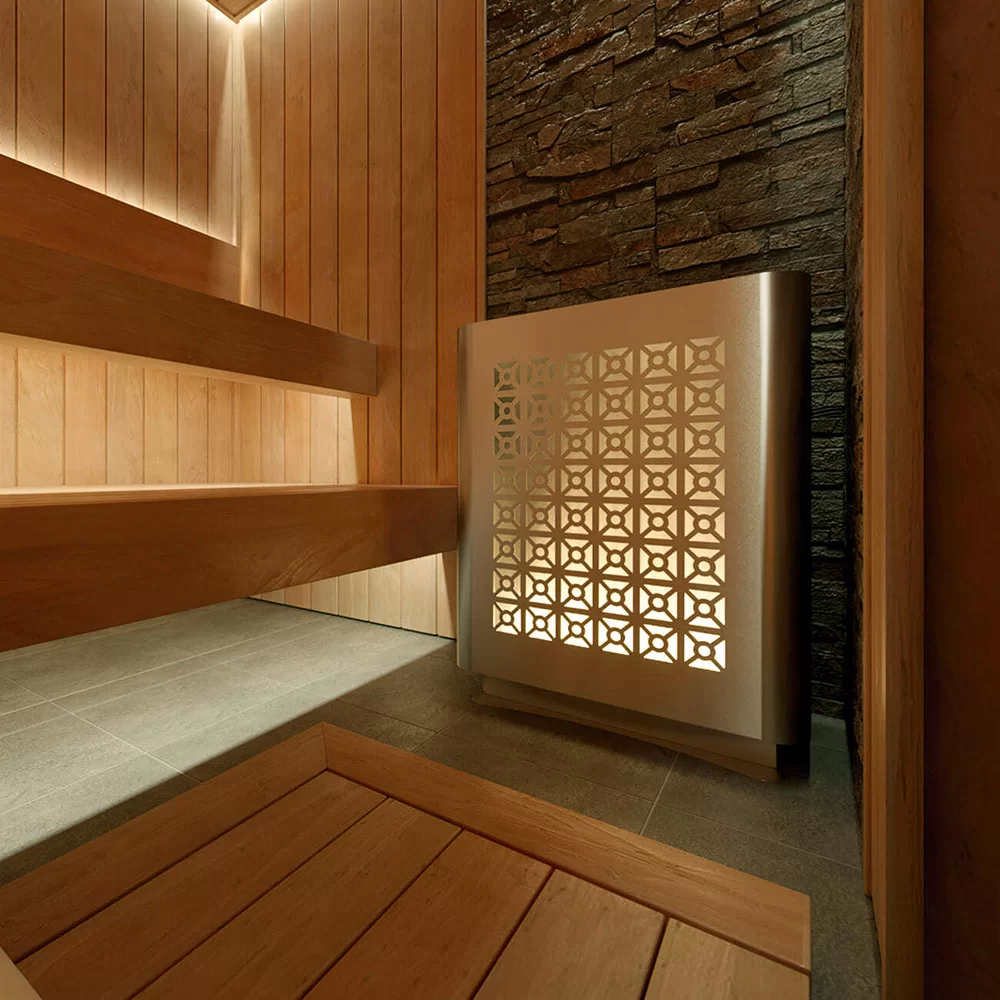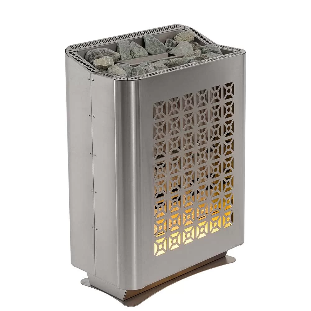 Дизайнеры каменки, вдохновившись непередаваемой атмосферой бань с дровяными печами, создали электрическую печь с подсветкой, создающую неповторимый уют в вашей сауне благодаря традиционному орнаменту.