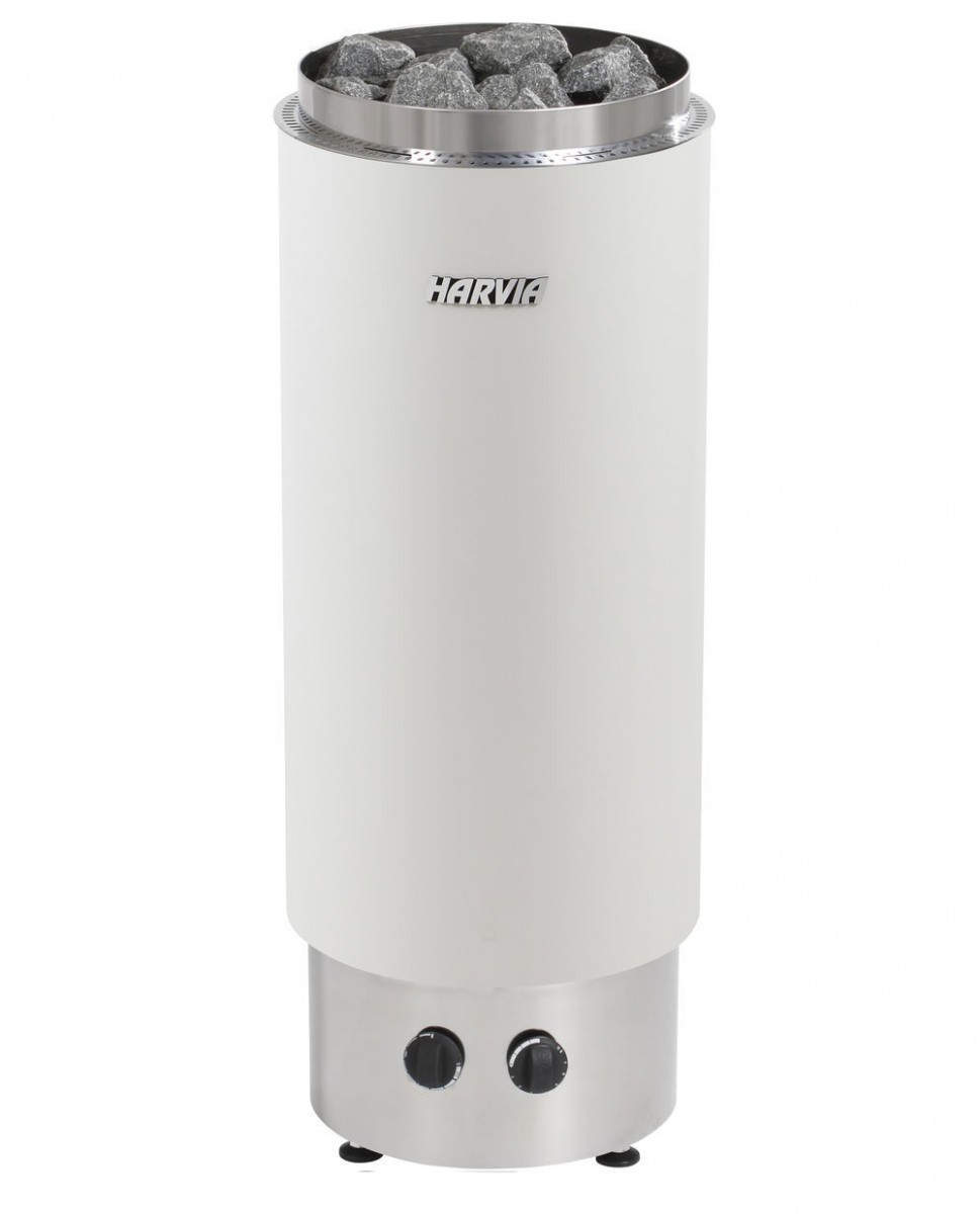 Электрическая печь Harvia Cilindro PC70VF является представителем популярной линейки башенных каменок Cilindro, отличительной особенностью которой является наличие защитного металлического кожуха белого цвета, изготовленного из высококачественной нержавеющей стали, отличающейся стойкостью к коррозии. Модель башенного типа предназначена для напольной установки, однако, благодаря своей цилиндрической форме, ее можно установить в углу, что позволяет сохранить достаточно свободного пространства в парилке. Номинальная мощность каменки составляет 7 кВт, этого вполне достаточно, чтобы быстро и равномерно прогреть помещение, объем которого не превышает 10 м3.