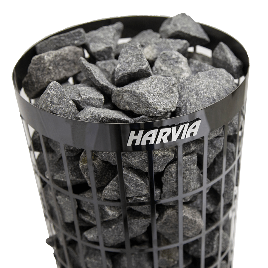 Электрическая печь Harvia Cilindro PC с встроенным управлением со стильным дизайном, большой закладкой камней. Все это способствует большой популярности данной серии. Представленные модели имеют кожух полностью открытый – классический и самый популярный тип, также есть варианты с полузакрытым кожухом и в закрытом кожухе (белого либо черного цвета). Масса загрузки камней составляет 80 кг. При этом фракция камней не должна превышать 5-10 см, желательно использовать только колотые натуральные камни высокой плотности. Камни лучше укладывать плотным слоем, но в то же время нужно сохранить воздушное пространство, что в свою очередь обеспечит быстрый нагрев сауны.