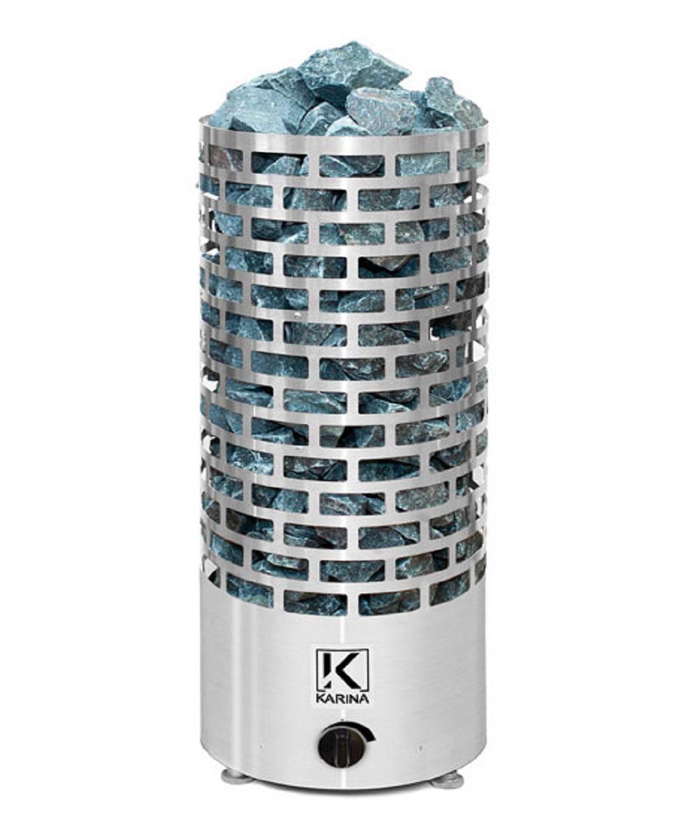 Электрическая печь KARINA Nova 8 сможет стать украшением любой сауны, благодаря стильному и интересному дизайну и цилиндрической форме. Печь устанавливается на пол, занимает немного места, и имеет приятную особенность – конструкция дает свободный доступ для полива камней, что позволяет регулировать насыщенностью пара. Любители русских парных поймут – камни снимают жар с раскаленных ТЭНов, не сжигая при этом кислород, а всесторонний доступ к камням помогает выбрать оптимальную влажность воздуха в парилке и интенсивность пара в помещении. В качестве материала для корпуса использована высококачественная нержавеющая сталь. Отсек вмещает до 90 кг камней. Объем печи оптимален для парильных помещений до 11 куб. м. Электрическую печь можно подключать как к сети 220В, так и к 380В. С помощью встроенного пульта можно управлять температурой нагрева воздуха прямо в парной. Любители русской бани оценят электропечь KARINA Nova 8 за внешний вид, и мягкий легкий пар, без которого невозможны полезные и приятные банные процедуры.