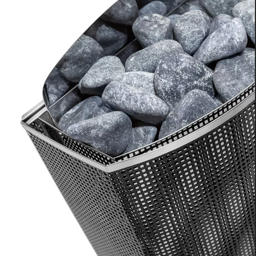 Несмотря на небольшие размеры, каменка крайне эффективна, так как оснащена специальными ТЭНами из нержавеющей стали, что позволяет с высокой скоростью прогревать помещение.