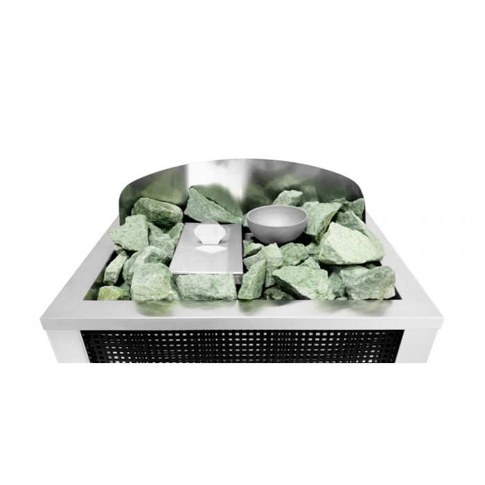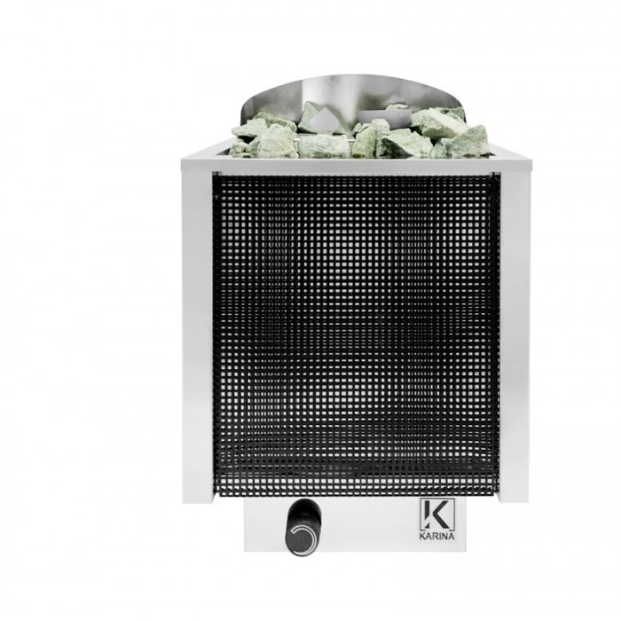 Электрокаменка Karina Optima Steam 6 предназначена для использования в парных объемом от 7 до 9 м3. Печь выполнена в настенном варианте со встроенным регулятором температуры. Напряжение питания печи 220В/380В. Данная печь имеет 3 тэна, между которыми расположен бак для воды, который является парогенератором и одновременно фитозапарником для трав, и емкость в виде закрытой каменки с воронкой для получения мелкодисперсного пара. В закрытую каменку мы рекомендуем закладывать шары из нержавейки для более правильного эффекта. Обе емкости можно достать из печи для последующей очистки/мойки от налета.
