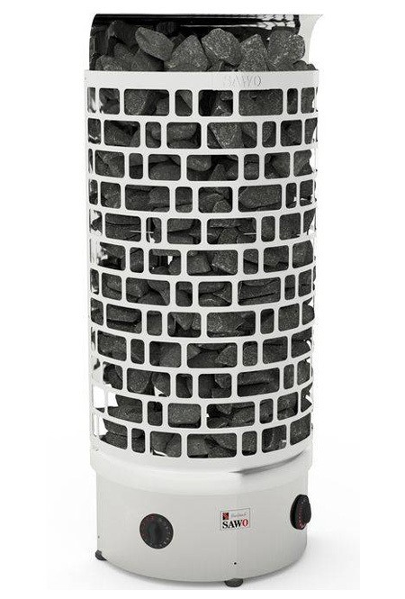 Электрическая печи Sawo серии Aries Round - линейка печей с необычным дизайном. Внешне электрокаменки напоминают каменную башню. Нагревательные ТЭНы находятся по центру. Снаружи каркас печи выполнен в виде сетки, которая заполняется большим количеством камней для сауны. Конфигурация печи позволяет использовать Sawo Aries в саунах с многоярусным размещением пологов. При этом вы можете быть уверены в равномерном прогреве каждого яруса. Если вы хотите купить универсальную электрокаменку, то Aries - один из лучших вариантов. Подливая на камни воду можно добиться любого уровня влажности, а благодаря пульту управления заранее или в процессе парения установить необходимый температурный режим.