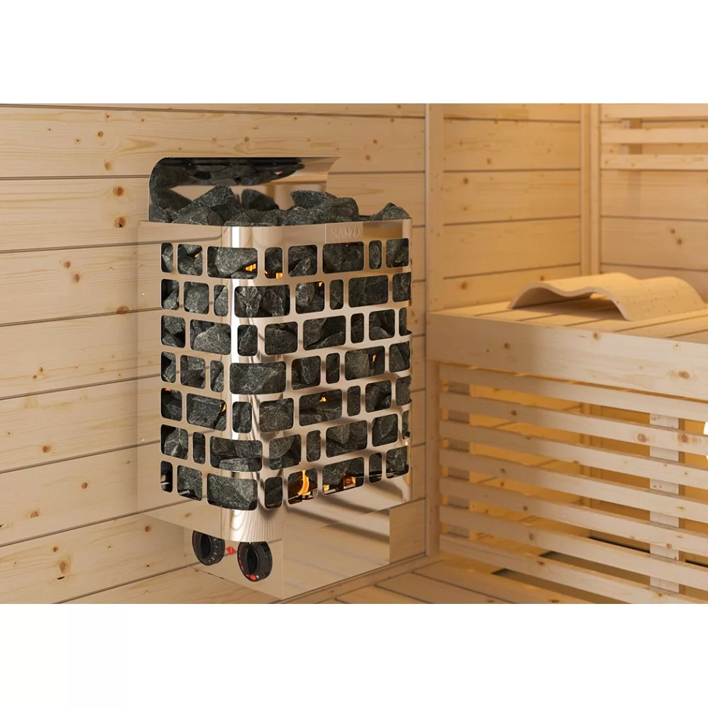 Красивая настенная печь с корпусом из нержавеющей стали и фирменным узором SAWO, разработанная в стиле моделей Aries и Cubos. Такой уникальной каменки вы еще не видели. Krios вмещает больше камней, а потому дает больше пара. Идеальное решение для создания мягкого и влажного тепла в небольших и средних саунах.