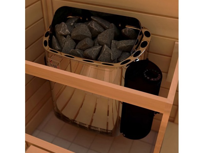 Электрическая печь Sawo серии Scandia модификации NB оснащены встроенным пультом управления с таймером и термостатом, позволяющими вручную регулировать работу печи прямо из парной. Внешний корпус изготовлен из стойкой к коррозии нержавеющей стали, а внутри печь выполнена из оцинкованной стали. Печь спроектирована для настенного размещения, позволяя сэкономить пространство в парной. Электрическая каменка Scandia вмещает 18-22 кг камней, подливая воду на которые, можно контролировать влажность, создавать необходимый для себя микроклимат и наслаждаться комфортным паром.