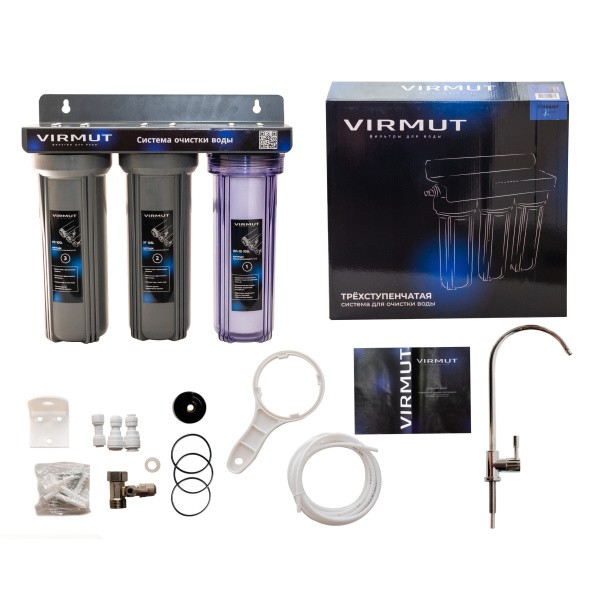 Фильтр проточный Virmut стандарт, производительность 1.5 л/мин, количество ступеней очистки: 3, рабочее давление воды от 1 до 6 бар, рабочая температура воды от 2 до 40 °C