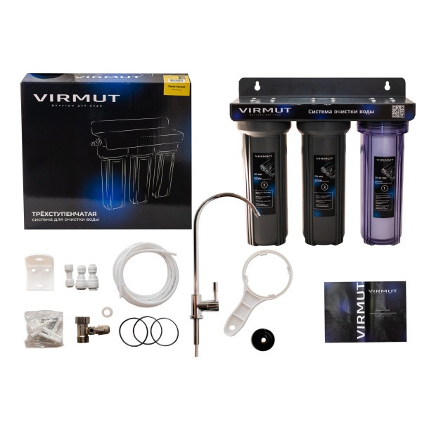 Фильтр проточный Virmut умягчение, производительность 1.5 л/мин, количество ступеней очистки: 3, рабочее давление воды от 1 до 6 бар, рабочая температура воды от 2 до 35 °C