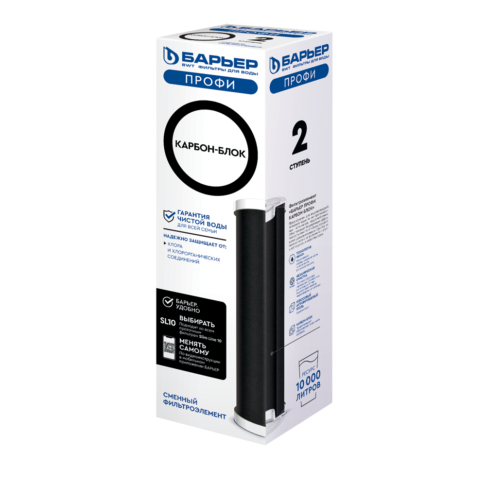 Фильтроэлемент БАРЬЕР Профи Карбон-блок для очистки от соединений хлора и механических загрязнений