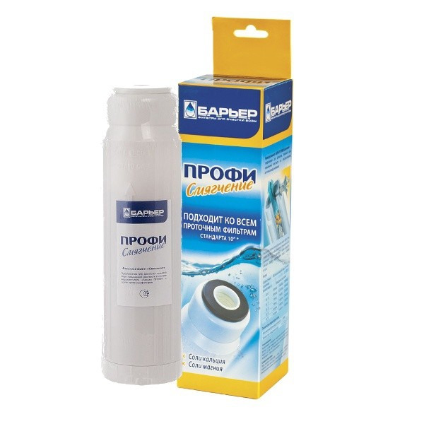 Картридж Барьер ПРОФИ Смягчение - предназначен для доочистки питьевой воды повышенной жесткости из централизованных источников водоснабжения. Снижение жесткости воды с использованием технологии «byPass» позволяет избежать гиперумягчения в начале ресурса. Ресурс - зависит от исходной жесткости и среднесуточного потребления воды Барьер ПРОФИ Смягчение снижает жесткость воды с использованием технологии «byPass» позволяет избежать гиперумягчения в начале ресурса. Фильтроэлемент предназначен для доочистки питьевой воды повышенной жесткости из централизованных источников водоснабжения. Устанавливается во вторую ступень очистки водоочистителей «БАРЬЕР ПРОФИ Hard» и «БАРЬЕР ПРОФИ Фильтроэлемент предназначен для доочистки питьевой воды повышенной жесткости из централизованных источников водоснабжения.