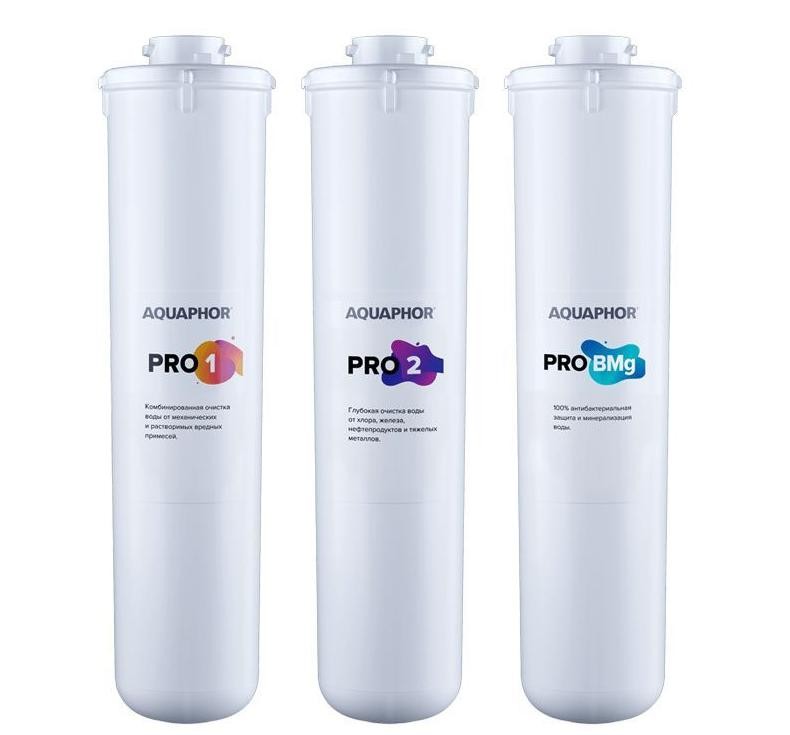 Комплект модулей сменных фильтрующих Аквафор Pro1-Pro2-Pro BMg, защита от ржавчины, очистка от металлов, механическая очистка, обеззараживание