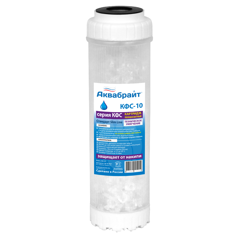 Полифосфатный картридж Аквабрайт КФС-10 для магистральных фильтров размера 10SL (Slim Line).