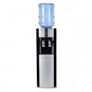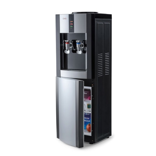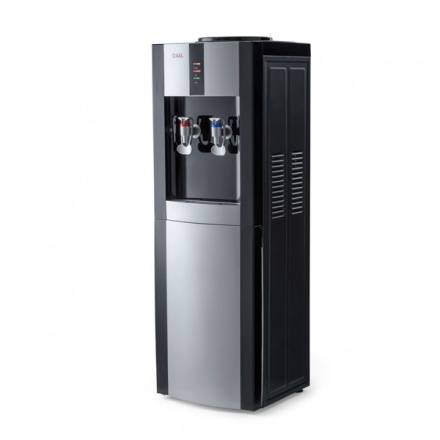 Современный кулер с компрессорным охлаждением и холодильником. Встроенный небольшая камера для хранения продуктов. Аппарат с хорошей производительностью горячей и холодной воды. Краны с внутренней резьбой для удобной замены в случае необходимости. Цвет черный с серебряной вставкой.