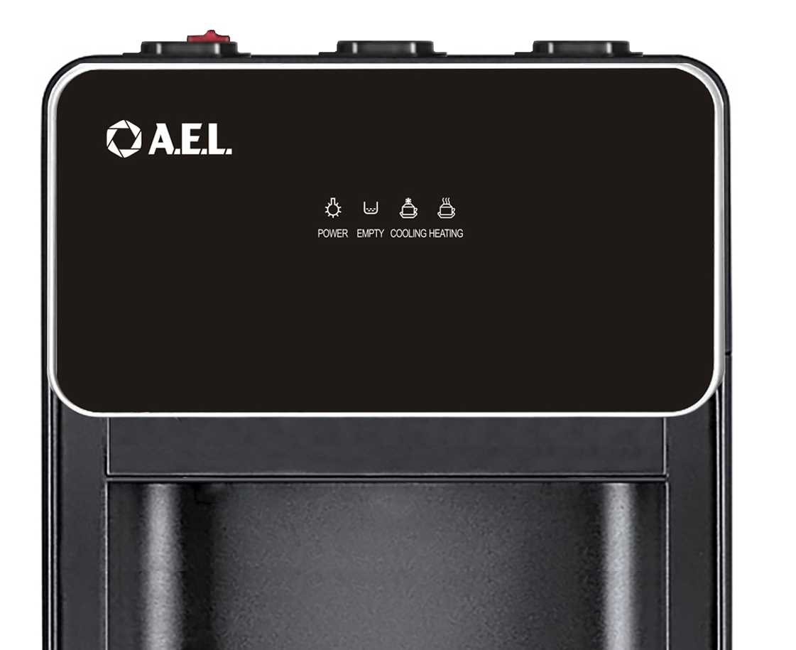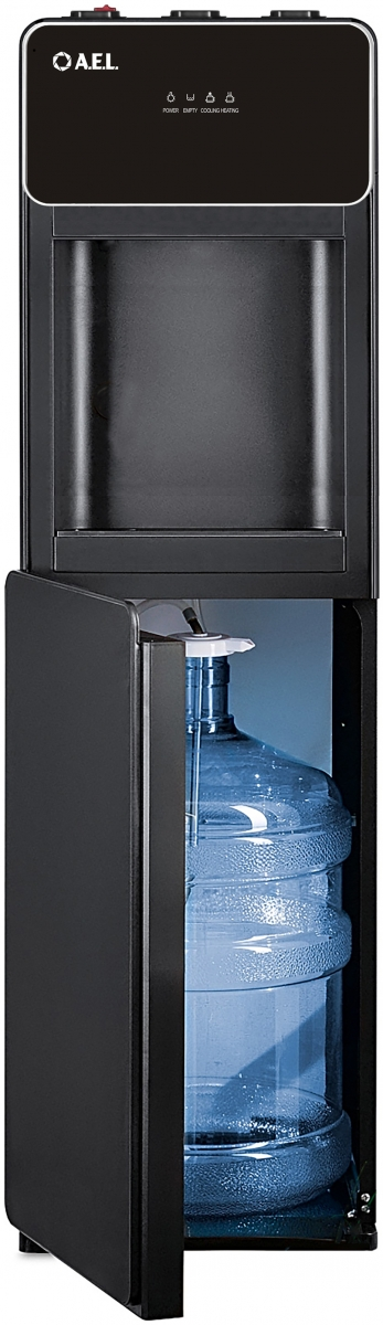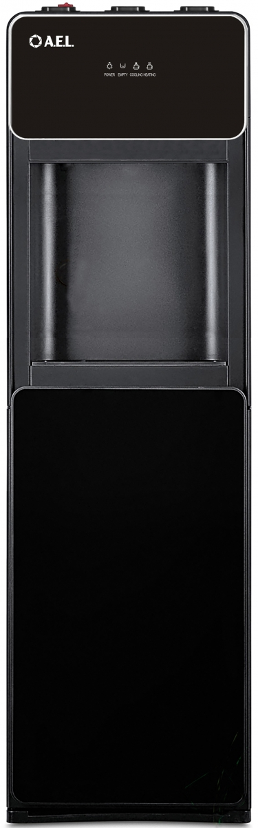 Кулер LD-AEL-814a full black — напольный кулер с нижней загрузкой бутыли. Три крана подачи воды (клавиши): для подачи горячей воды, холодной и комнатной температуры (напрямую из бутыли). Защита на кране горячей воды. Корпус черного цвета с эффектной стеклянной передней панелью. Стильный корпус полностью черного цвета и нижний отсек, в котором полностью скрывается бутыль, позволяют эффектно вписать этот кулер в современный интерьер с продуманным дизайном. Модель с электронным охлаждением. Есть индикация работы аппарата, нагрева, охлаждения и необходимости заменить бутыль.