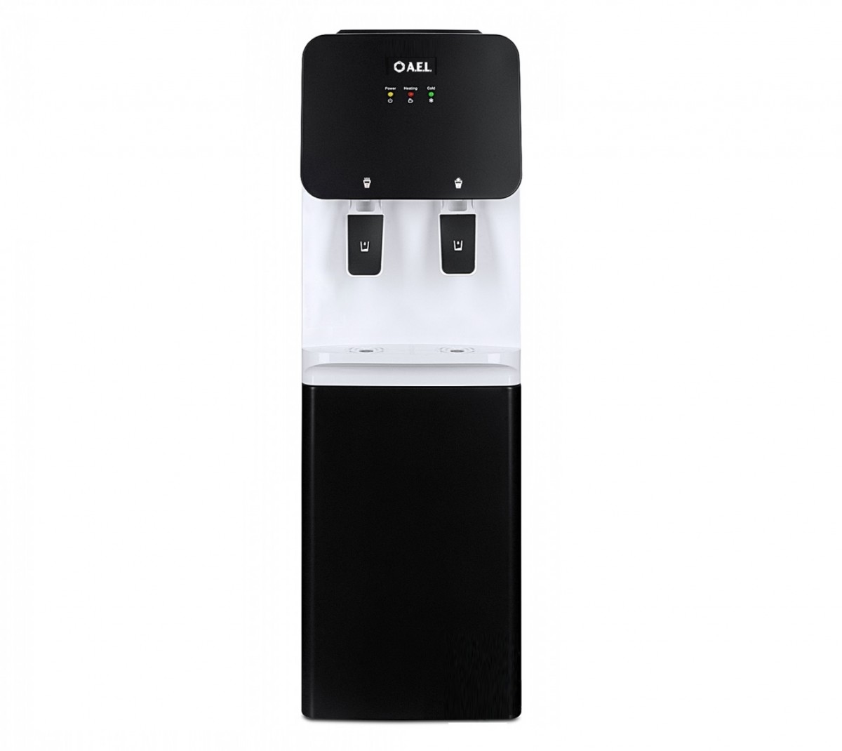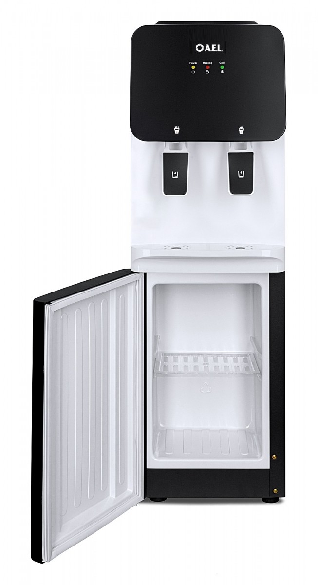 Напольный кулер с электронным охлаждением, нагревом и шкафчиком для продуктов. Гладкая лицевая панель, удобные краны "нажим чашкой" и малые габариты этого аппарата эргономично впишутся в Ваш офис.
