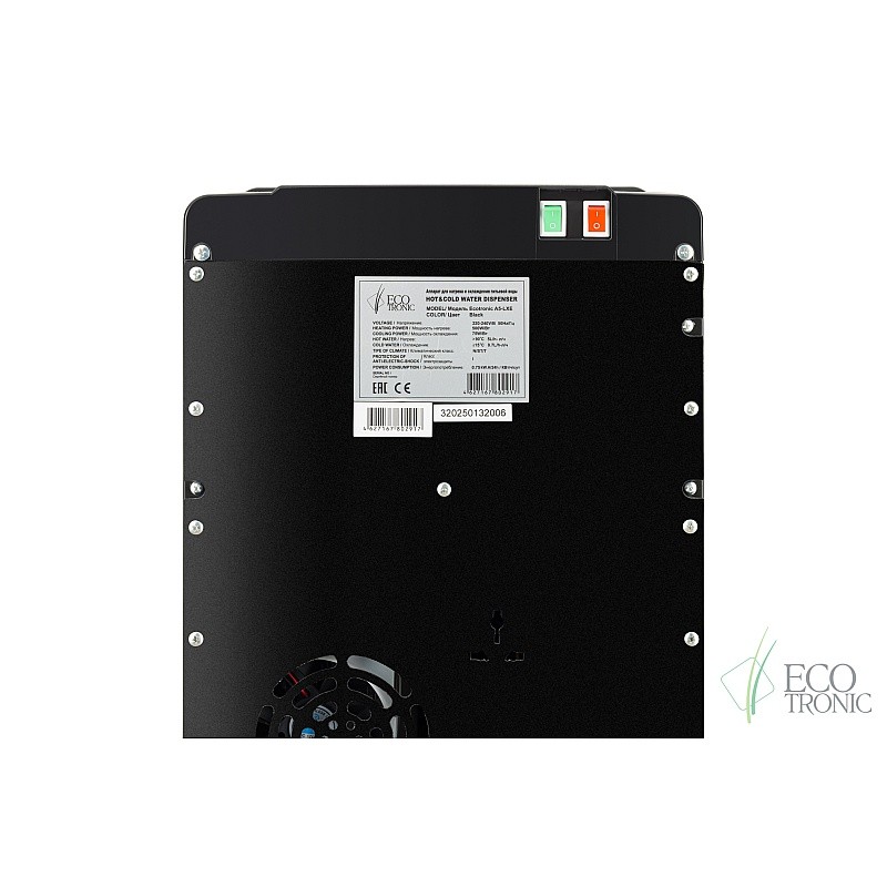 Кулер для воды Ecotronic A5-LXE Black, тип исполнения: напольный с нижней загрузкой, мощность нагрева 500 Вт, мощность охлаждения 70 Вт, нагрев 5 л/ч, охлаждение 1 л/ч
