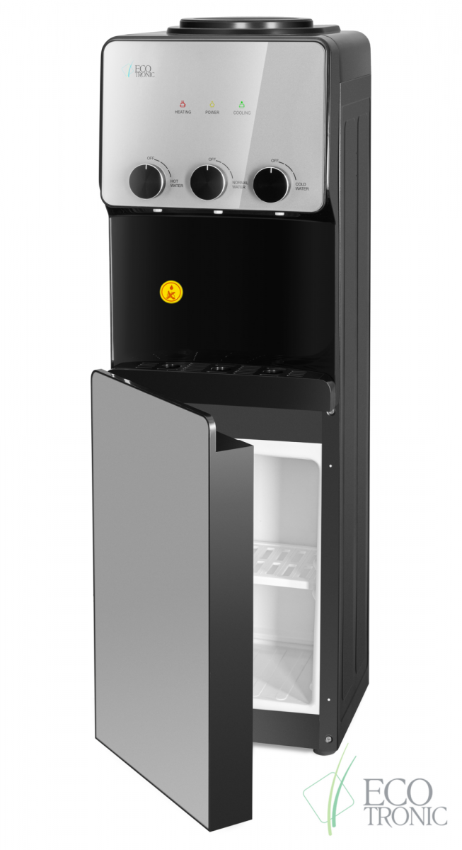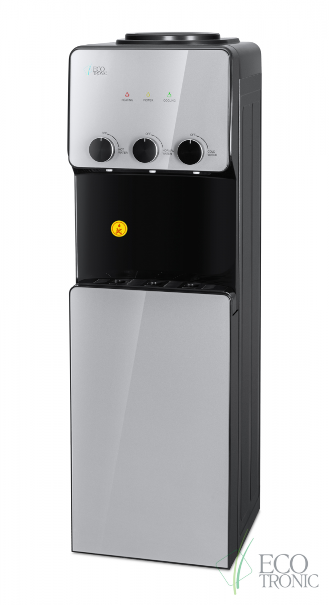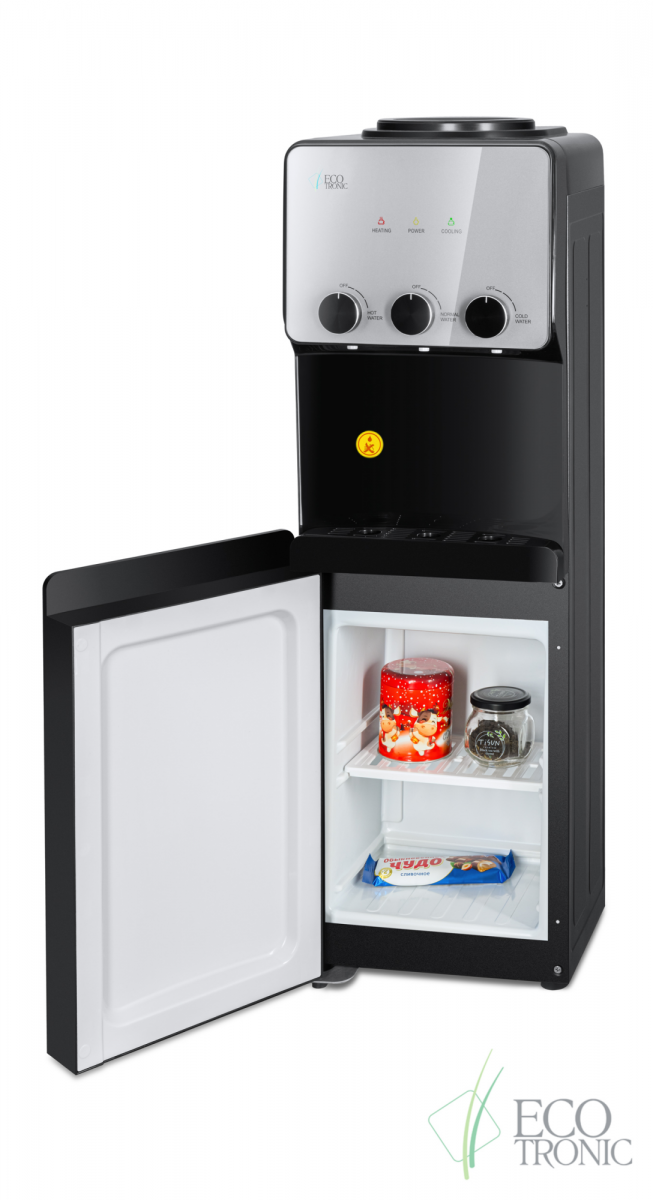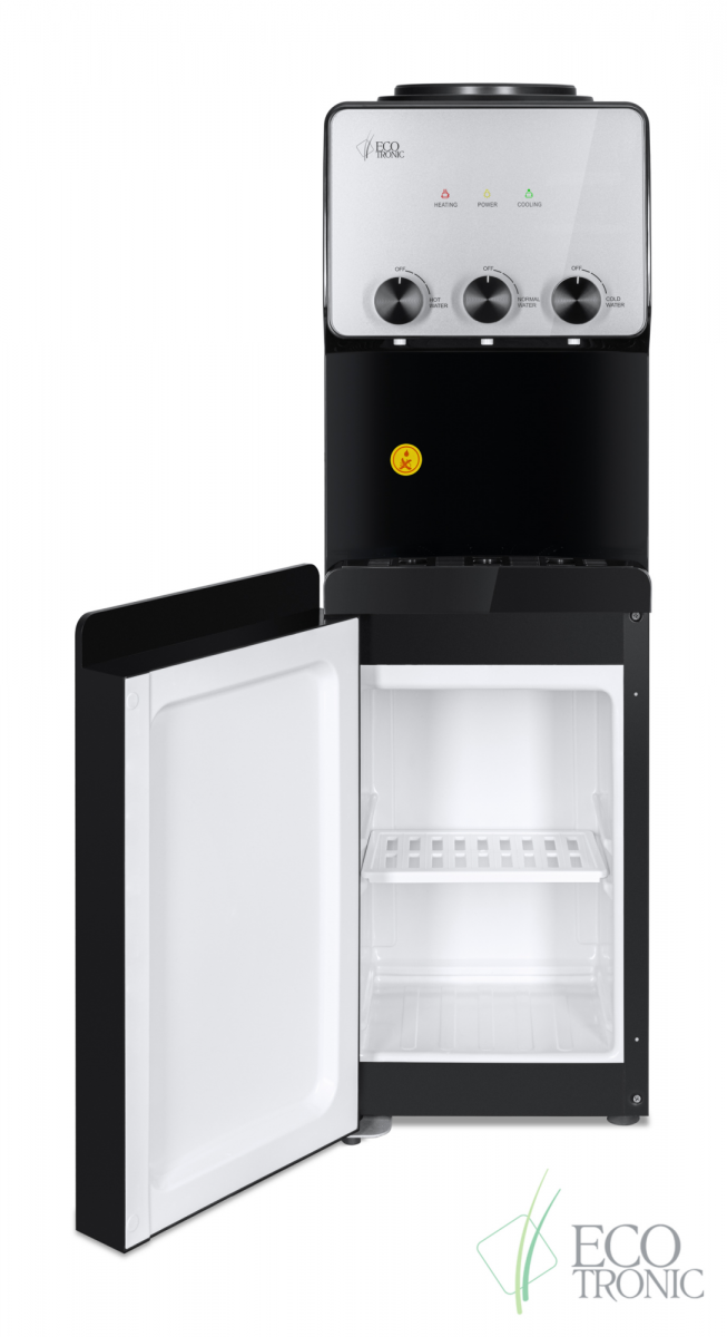 Кулер Ecotronic Ecotronic K26-LCE black-silver со шкафчиком, напольный, нагрев/охлаждение, производительность нагрева 5 л/час, производительность охлаждения 1 л/час.