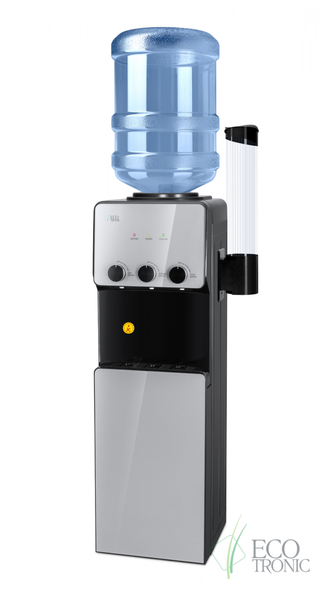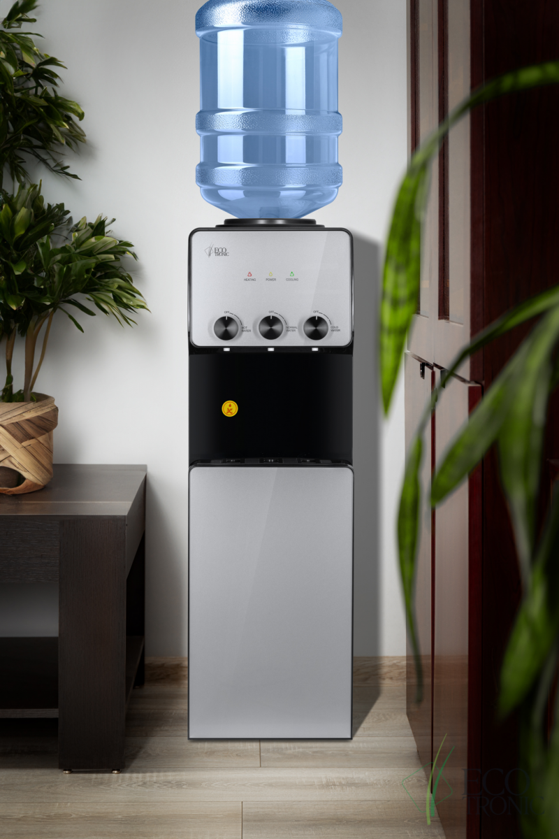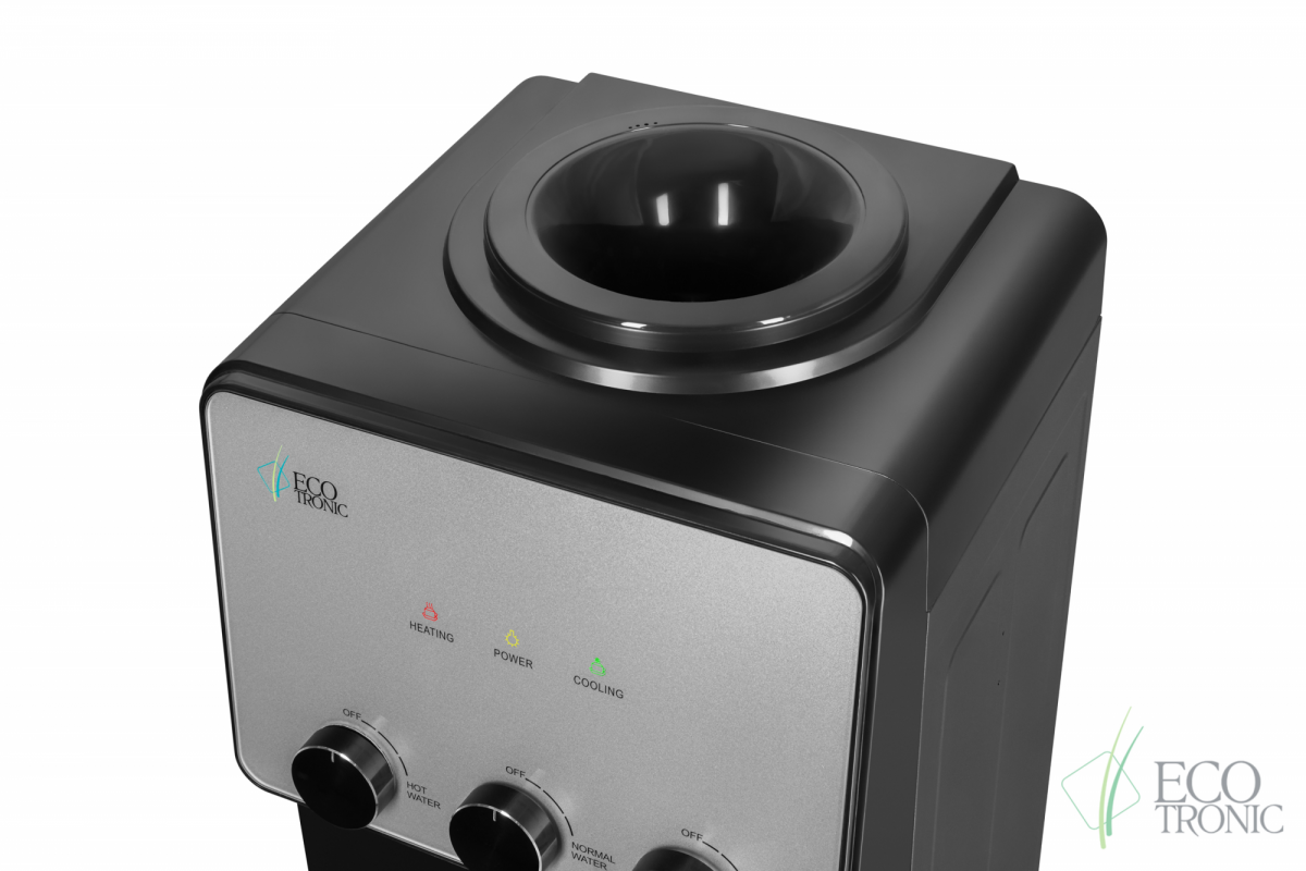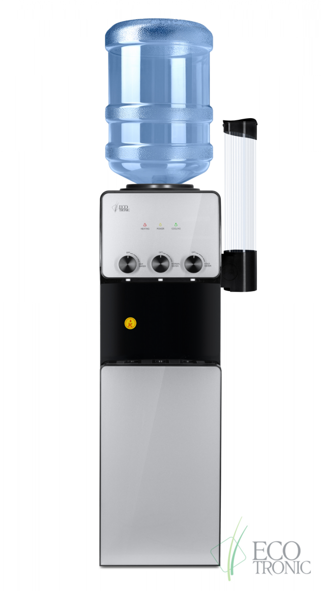 Кулер Ecotronic Ecotronic K26-LCE black-silver со шкафчиком, напольный, нагрев/охлаждение, производительность нагрева 5 л/час, производительность охлаждения 1 л/час.