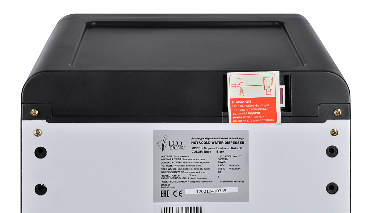 Кулер Ecotronic K42-LXE черный напольный, нагрев и охлаждение воды, бутыль снизу, без шкафчика