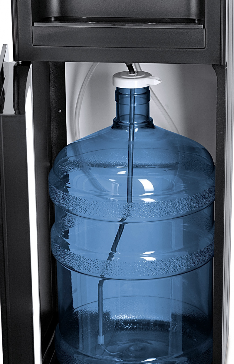 Необычный внешний вид кранов, стильный корпус полностью черного цвета и нижний отсек, в котором полностью скрывается бутыль, позволяют эффектно вписать этот кулер в современный интерьер с продуманным дизайном.