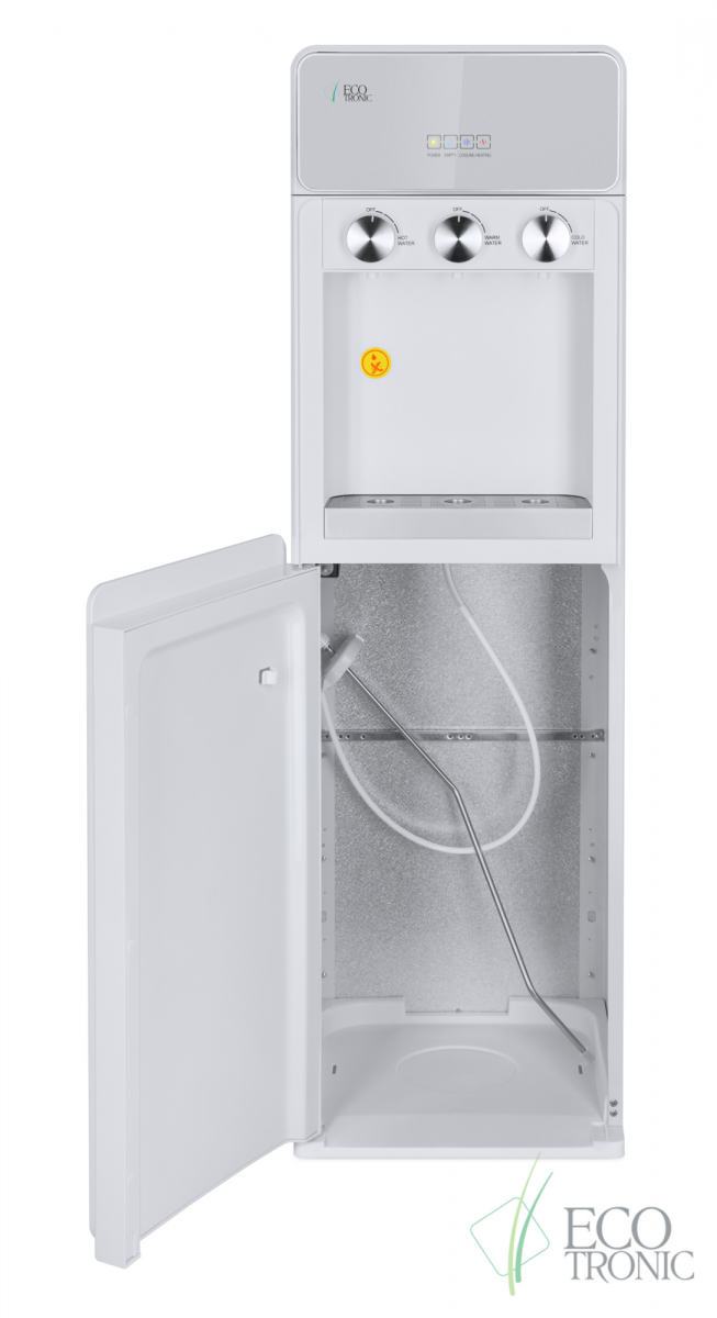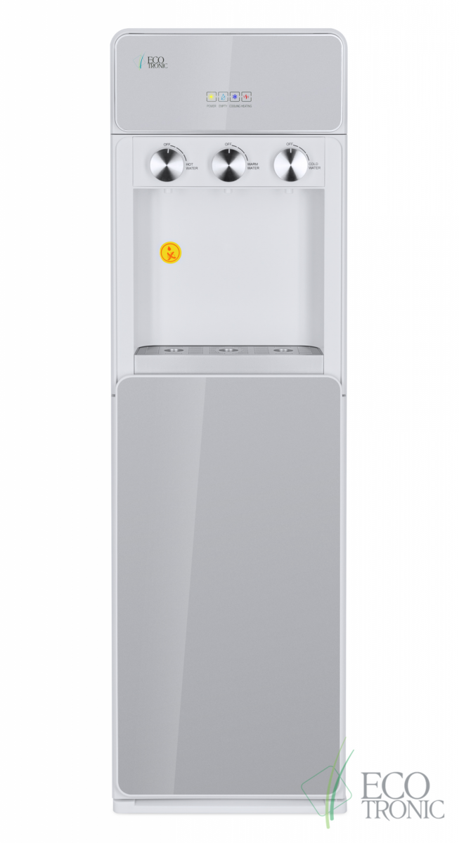 Кулер Ecotronic K42-LXE white-silver, нагрев и охлаждение, производительность нагрева 5 л/ч, производительность охлаждения 1 л/ч, мощность нагрева 430 Вт, мощность охлаждения 60 Вт, размещение напольное