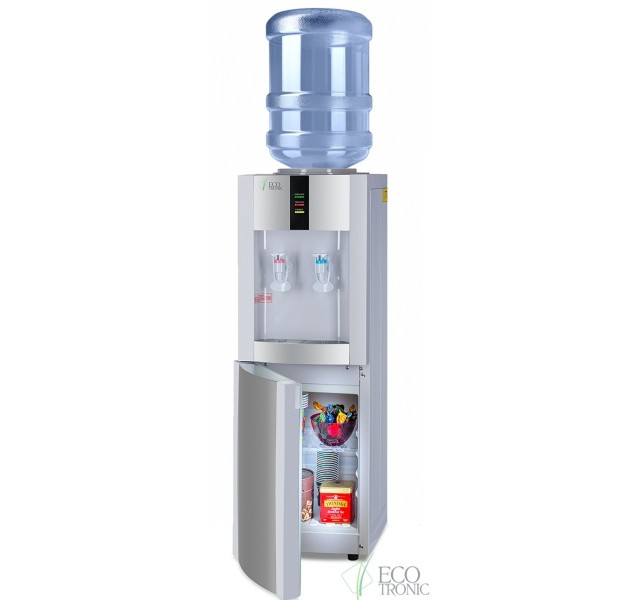 Кулер Ecotronic V21 LE white-silver. Напольный кулер с электронным охлаждением и шкафчиком.Тип кранов подачи воды - "Нажим кружкой". Одинарный блок охлаждения.