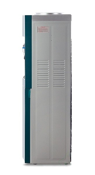 Кулер "Экочип" V21-LF green+silver. С холодильником. Бюджетный аналог классической модели Ecotronic Н1. Напольный кулер цвета морской волны с серебристой вставкой. Компрессорное охлаждение. Тип кранов подачи воды - "Нажим кружкой".