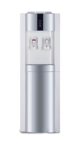 Напольный кулер Без охлаждения. Цвет белый с серебристой вставкой. Тип кранов подачи воды - "Нажим кружкой". Бак нагрева 1,1 л неразборый.