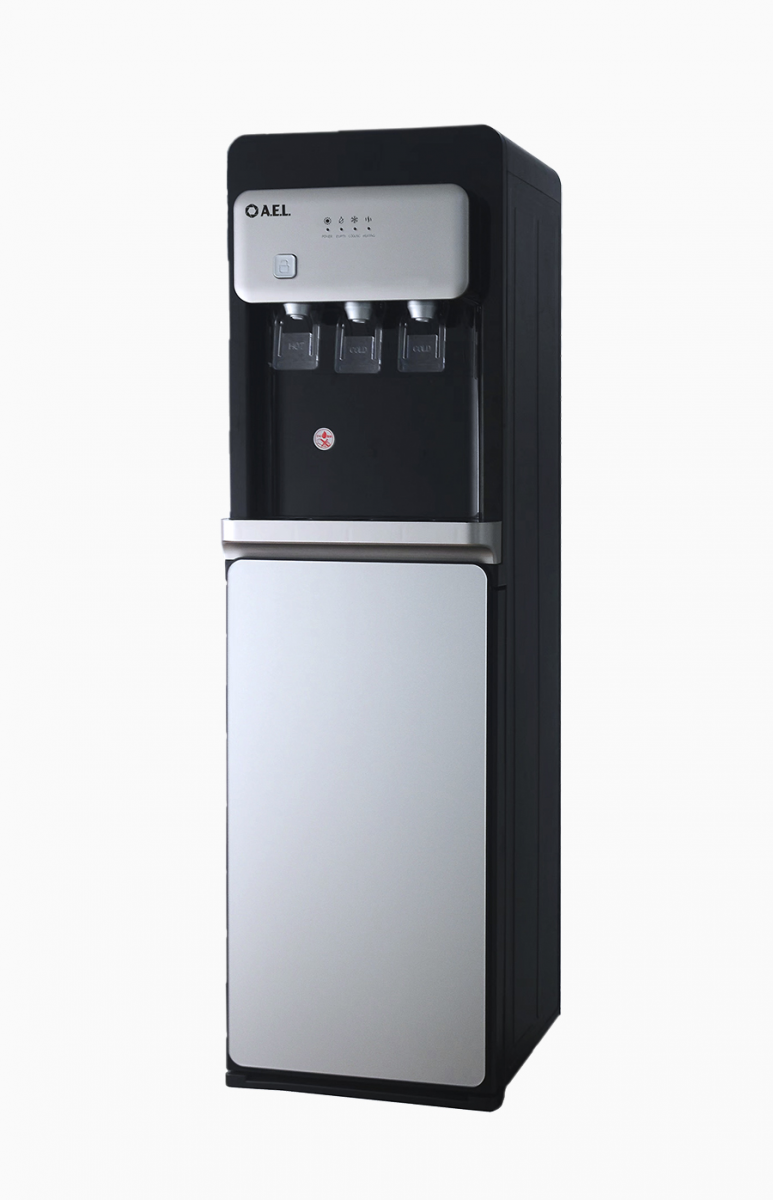 Новинка в ассортименте АЕЛ - кулер с нижней загрузкой бутыли с электронным охлаждением. Цвет: черный с серебристой вставкой. Модель оснащена тремя краниками нажим кружкой (горячая/холодная).