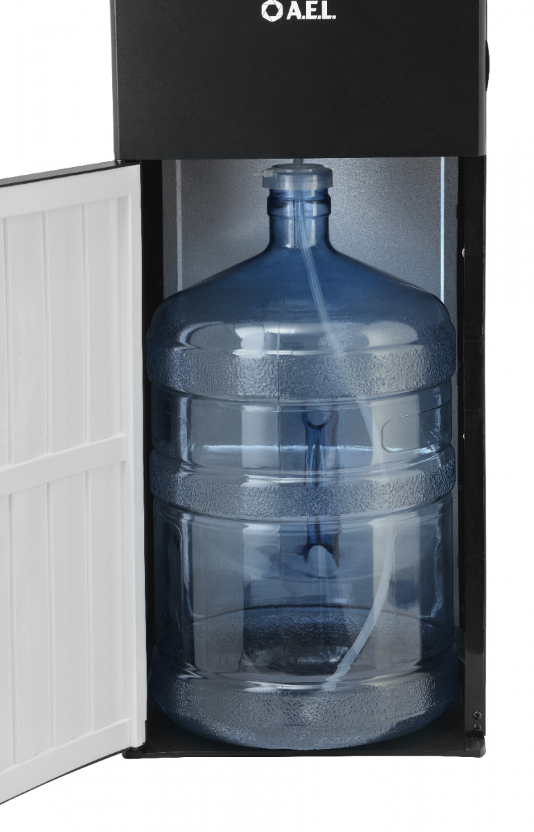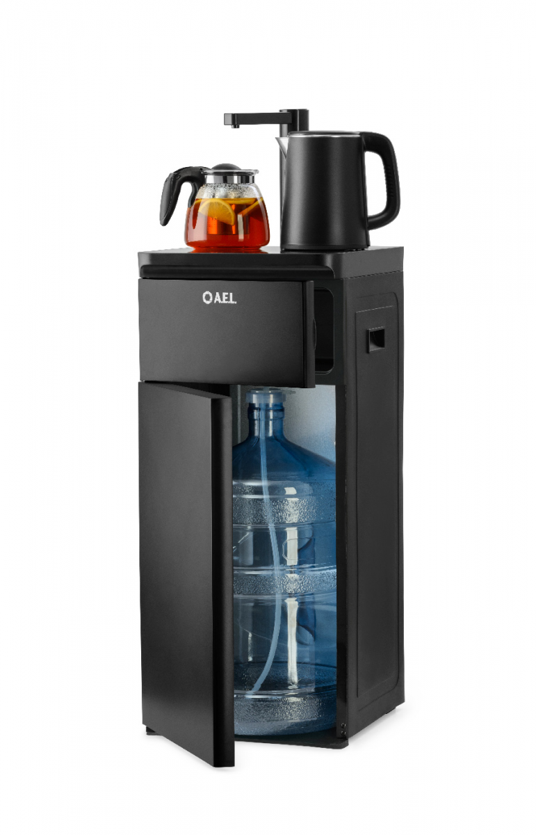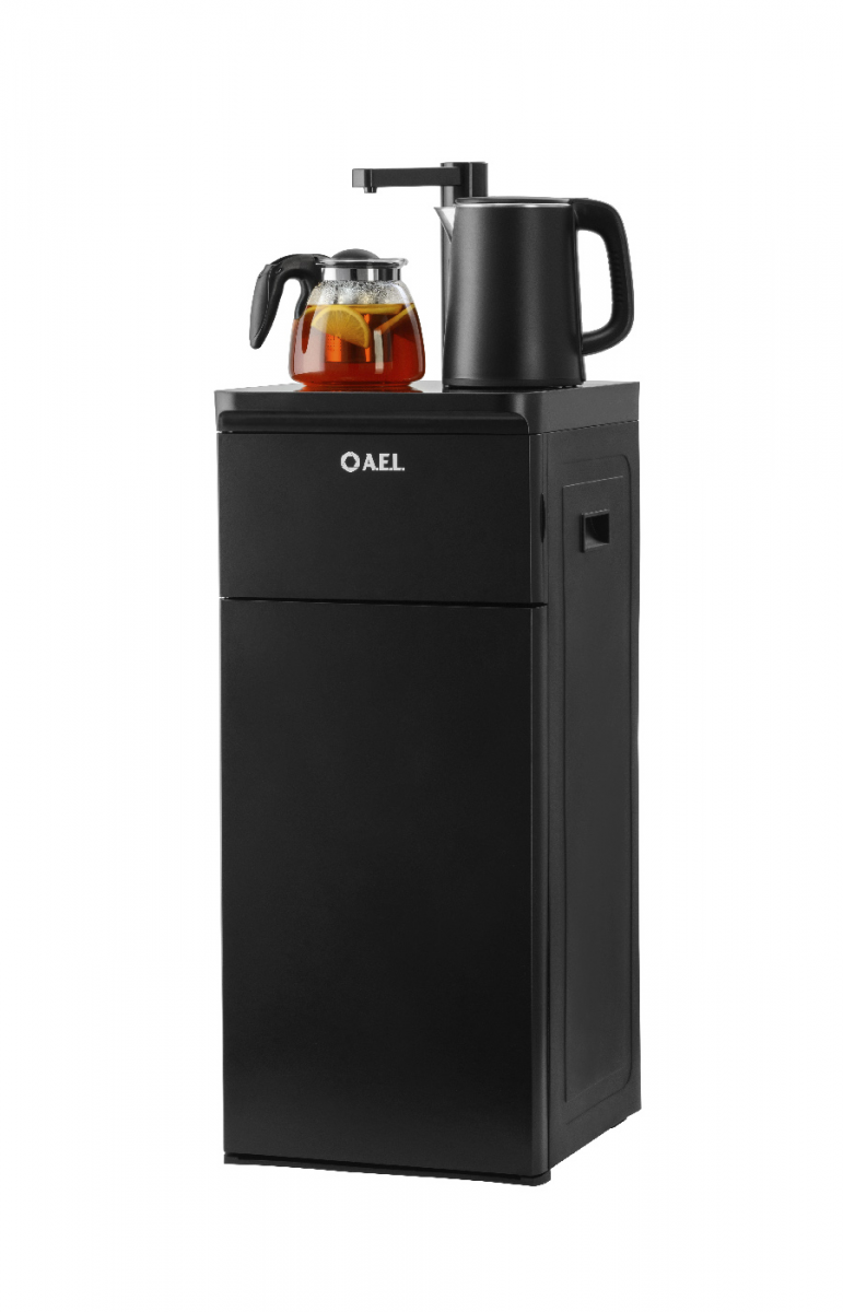 Кулер с чайным столиком Тиабар A.E.L. LK-AEL-53a напольный, цвет: черный, функции: нагрев 1350 Вт, со шкафчиком для посуды, нижняя загрузка воды
