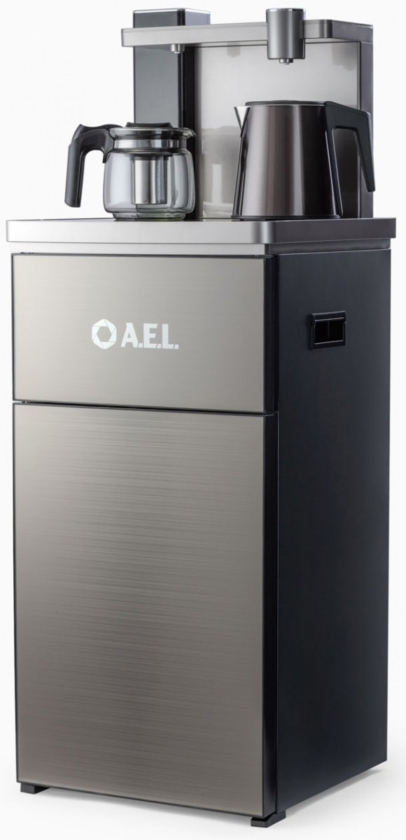 Кулер с чайным столиком Тиабар A.E.L. LD-AEL-51a напольный, цвет: кофейный, функции: нагрев 1350 Вт, охлаждение 75 Вт, со шкафчиком для посуды, нижняя загрузка воды