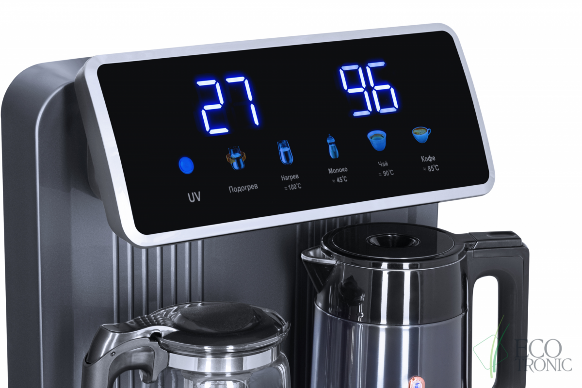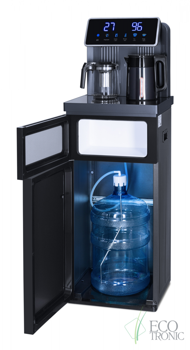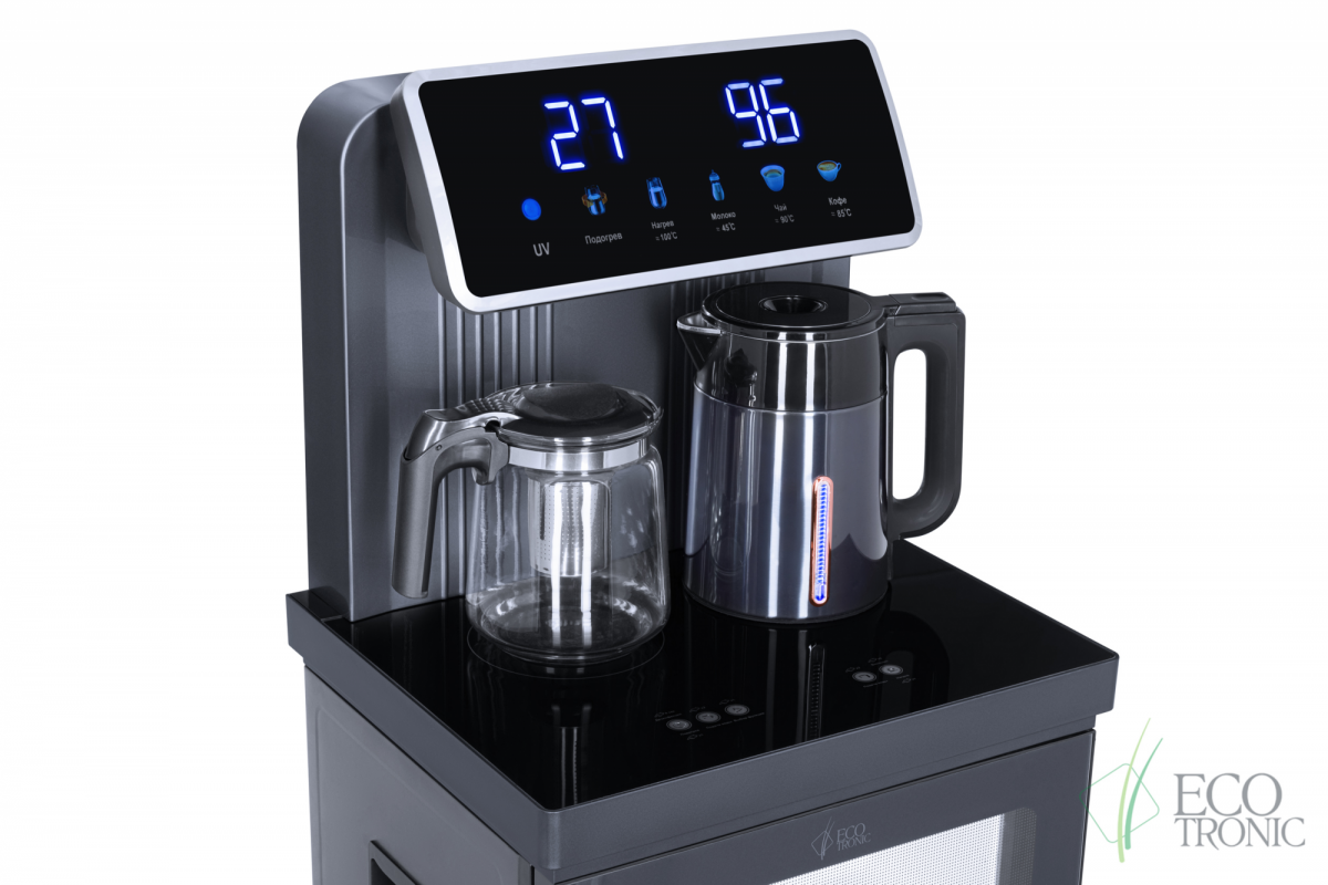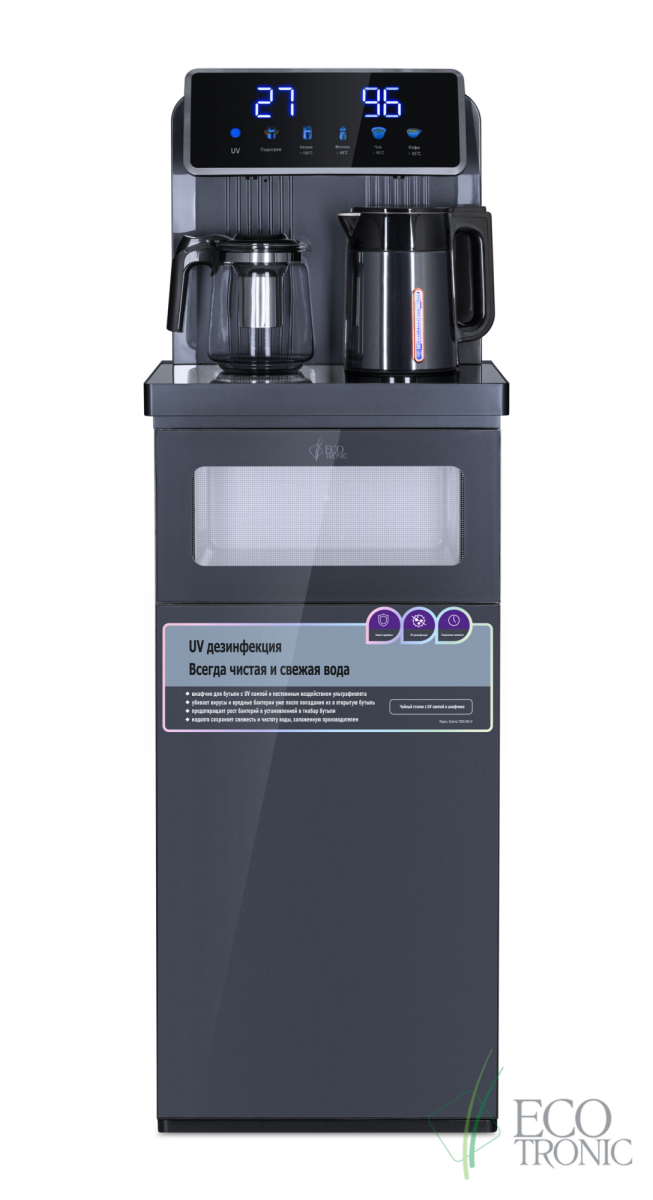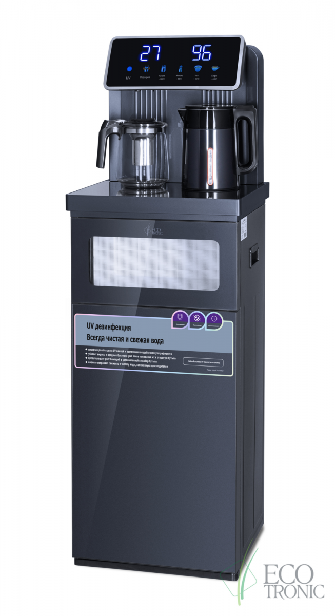 Кулер с чайным столиком Тиабар Ecotronic TB30-LNR UV dark grey имеет функцию нагрева и подачу воды комнатной температуры