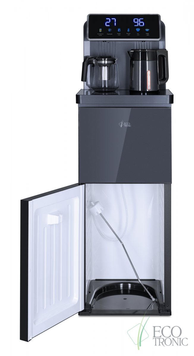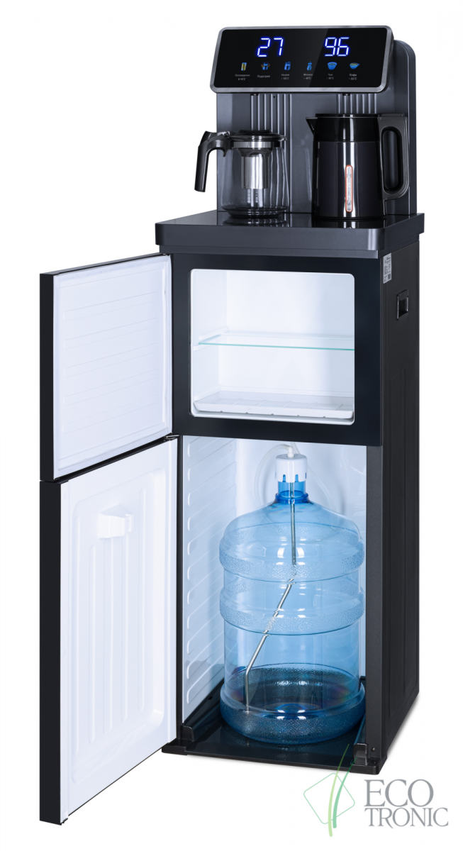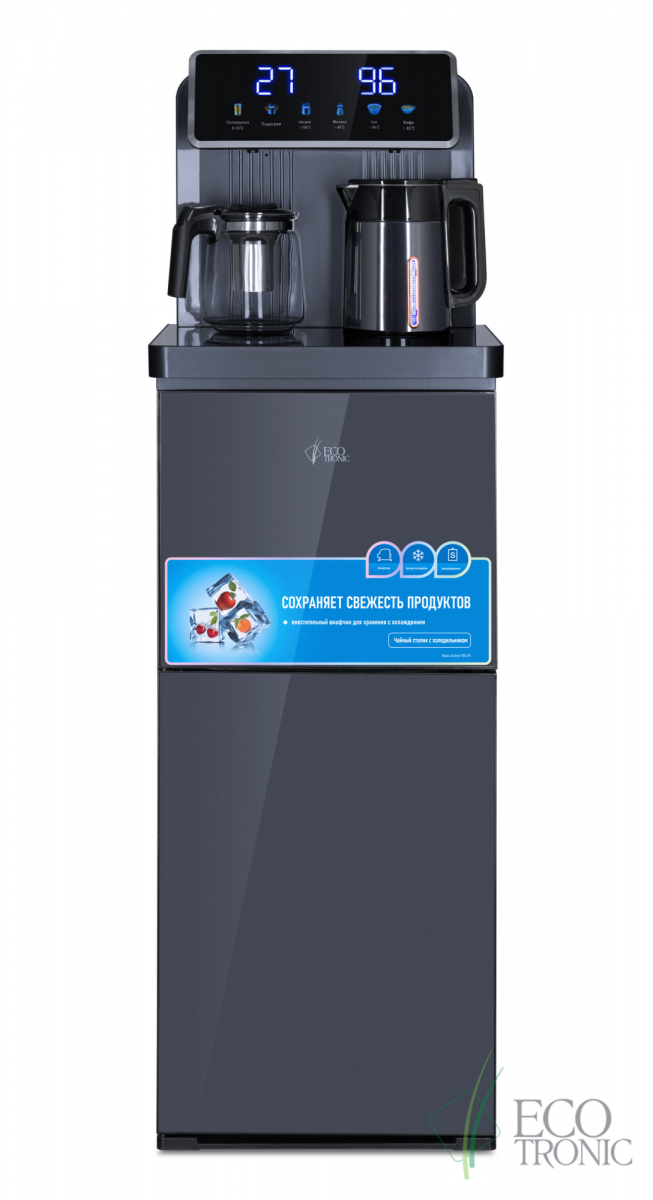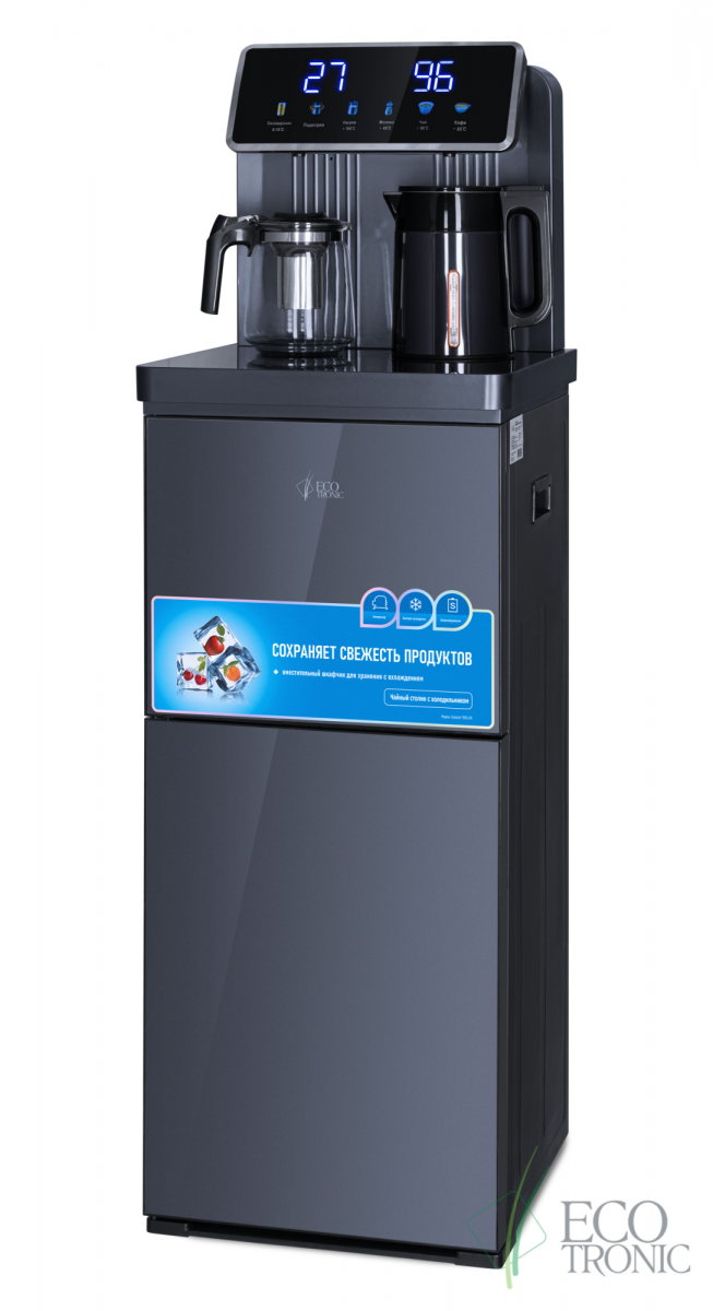 Кулер с чайным столиком Тиабар Ecotronic TB35-LFR dark grey с холодильником имеет функцию нагрева и подачу воды комнатной температуры