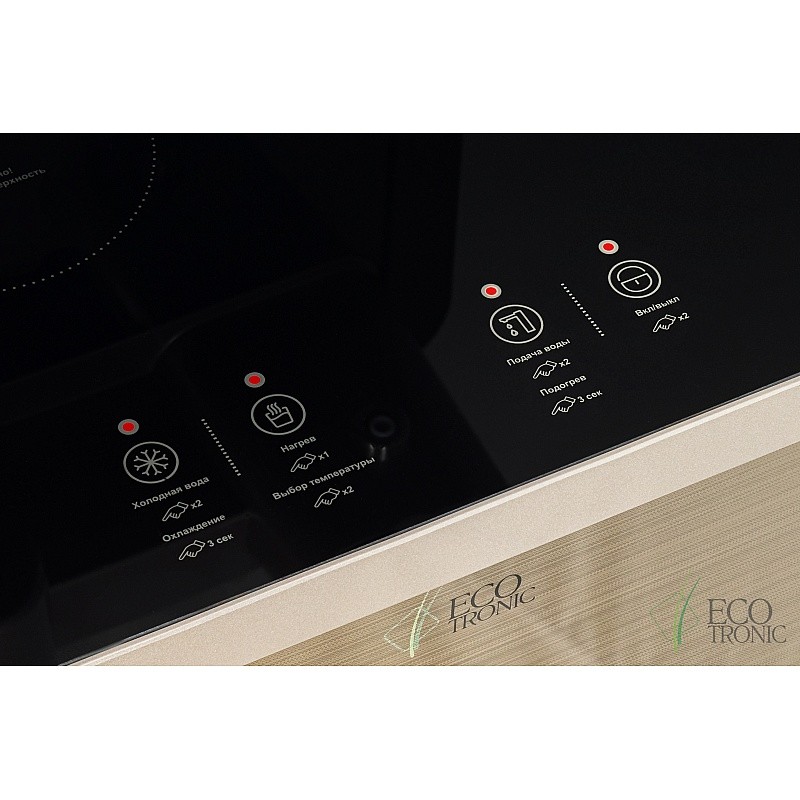 Тиабар Ecotronic TB40-LE gold — это напольный кулер с чайным столиком с электронным охлаждением. Нижняя загрузка бутыли. Два чайника — для кипячения и заварочный. Нагрев воды в чайнике до 100°С. Шкафчик для хранения. Управление с помощью сенсорной панели управления на русском языке на столешнице. Верхняя часть представляет собой стойку с двумя кранами направленного типа, совмещенную с информационным дисплеем с индикацией работы аппарата.