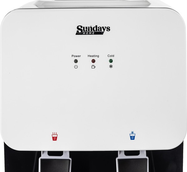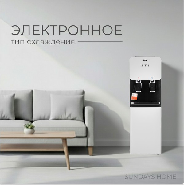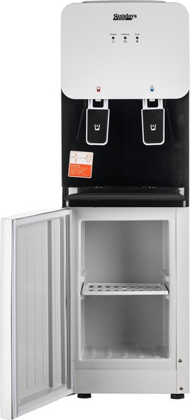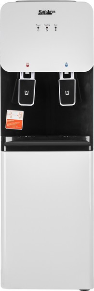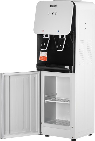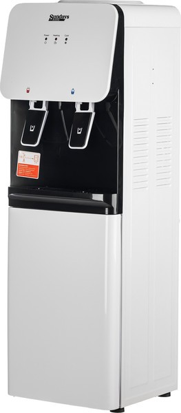 Кулер для воды Sundays SL-1004S (белый/черный) с охлаждением и нагревом, верхняя загрузка бутыли, встроенный шкаф, 2 крана с нажимом кружкой