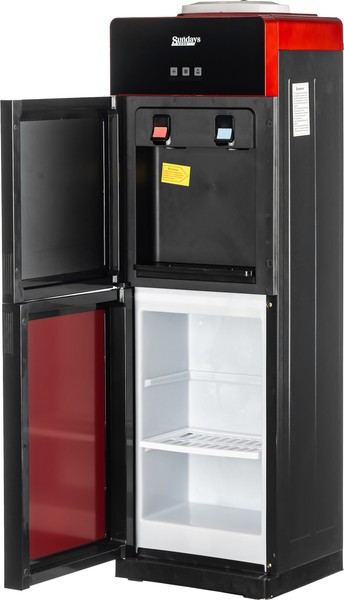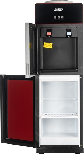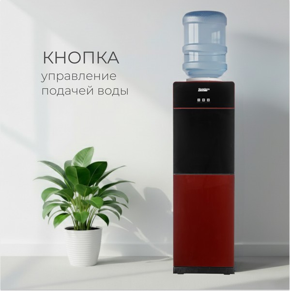 Кулер для воды Sundays SL-1199-3 (черный/красный) с охлаждением и нагревом, верхняя загрузка бутыли, 2 крана с кнопочным управлением подачи воды