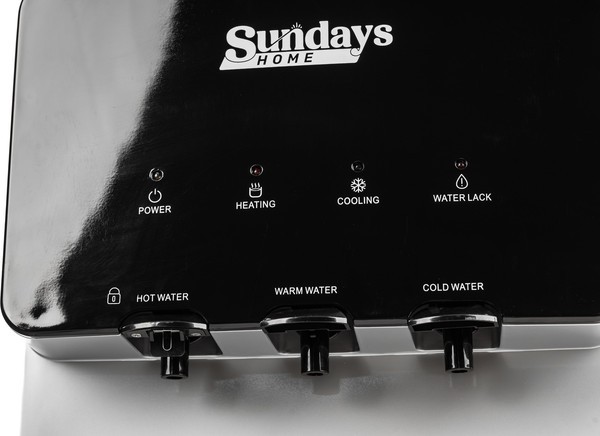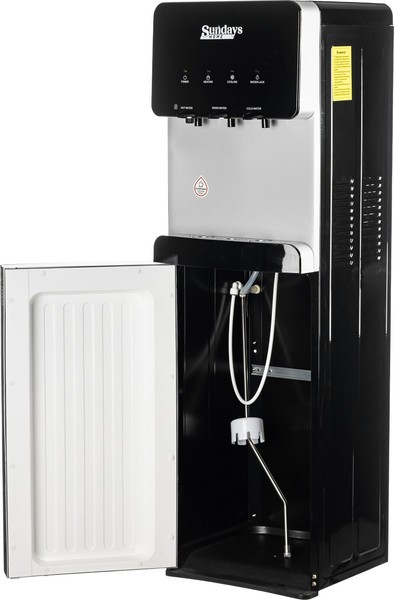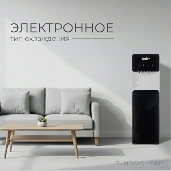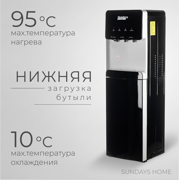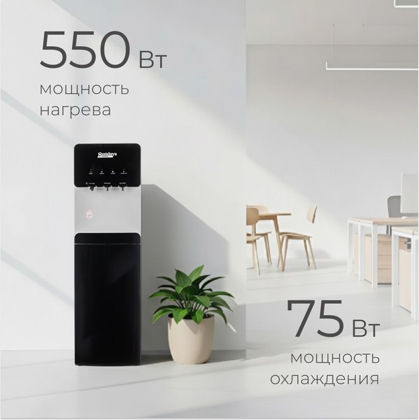Кулер для воды Sundays SL-807L (черный/серебристый) с охлаждением и нагревом, нижняя загрузка бутыли, 3 крана с сенсорным управлением подачи воды