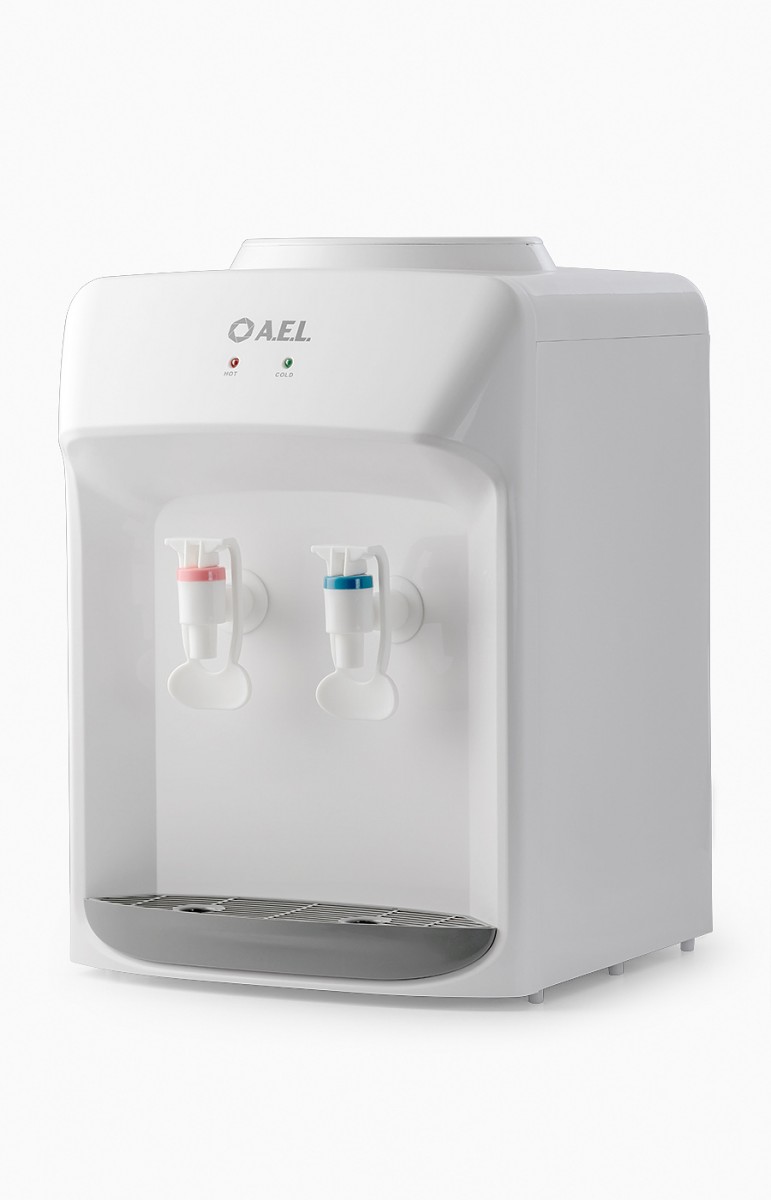 Настольный кулер A.E.L. TD-AEL-111 (белый) для воды с электронным охлаждением и верхней загрузкой бутыли. Имеет компактные размеры, благодаря чему легко устанавливается на стол или тумбочку не загромождая пространство. Оснащен двумя механическими кранами типа «нажим чашкой» для подачи горячей и охлажденной воды. Для включения/отключения нагрева или охлаждения на задней стенке корпуса расположены специальные тумблеры. Корпус изготовлен из высококачественного пищевого пластика. Кулер подходит как для домашнего, так и для офисного использования, на предприятиях и учреждениях.