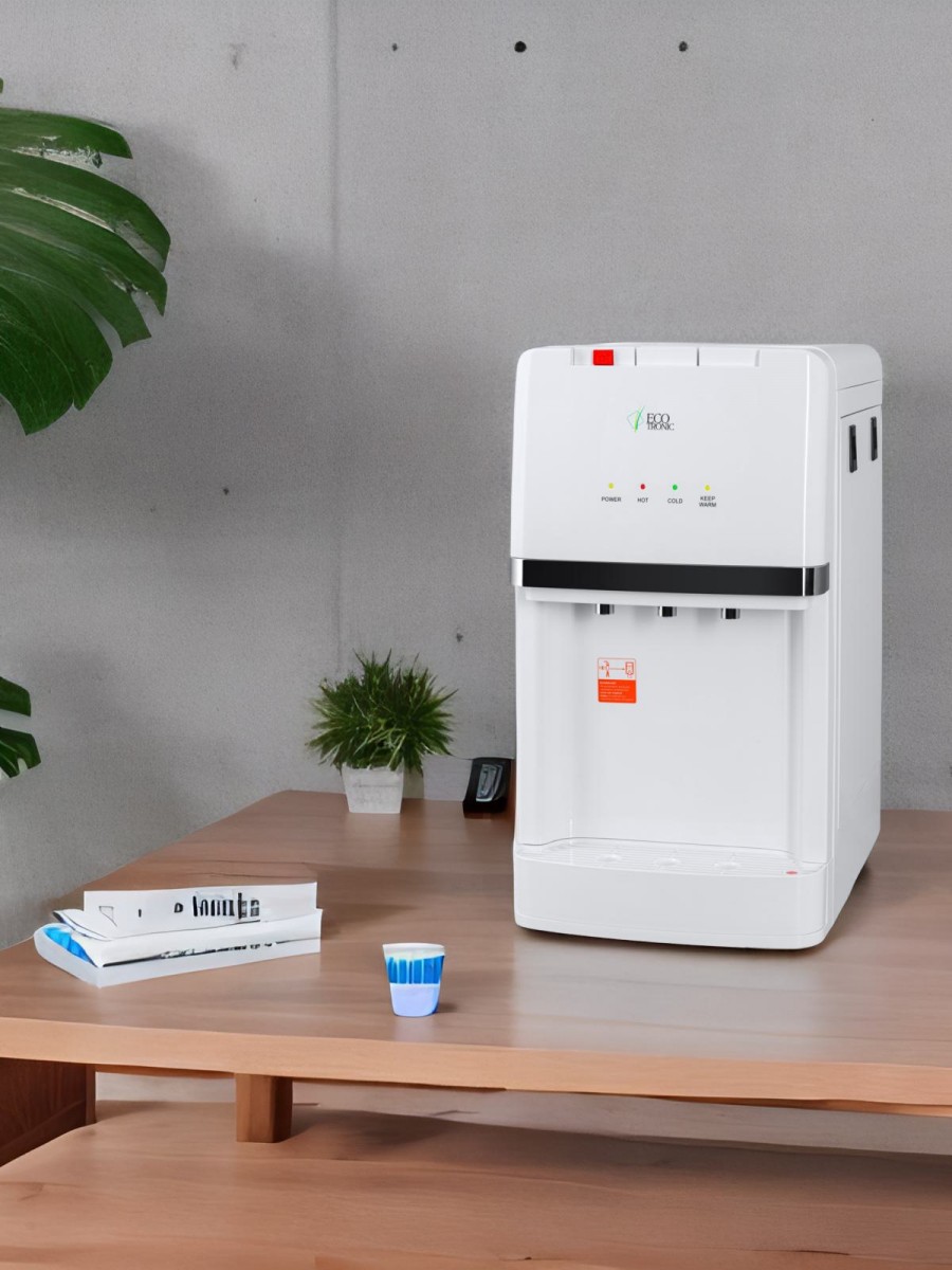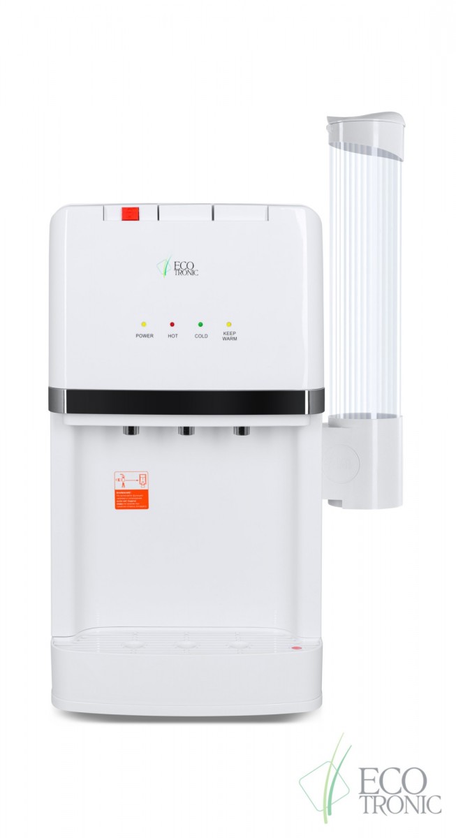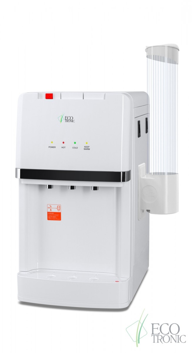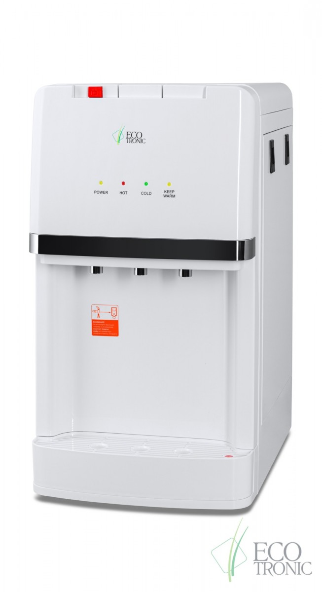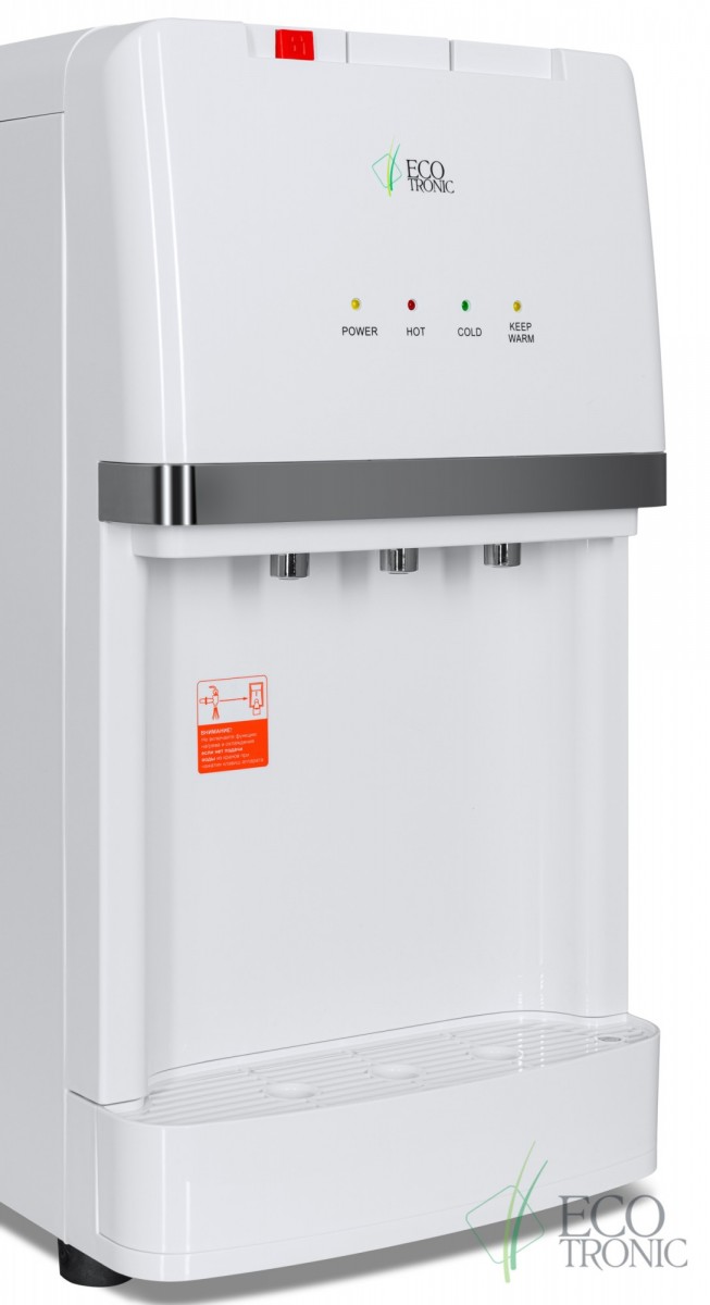 Пурифайер настольного типа с ультрафильтрационной системой очистки воды. Электронное охлаждение. Стильный дизайн. Три крана типа "клавиши": подачи горячей воды с защитой от детей, холодной воды и подачи воды комнатной температуры из бутыли. Индикация работы пурифайера, нагрева и охлаждения воды. Корпус белого цвета с серебристым декором.