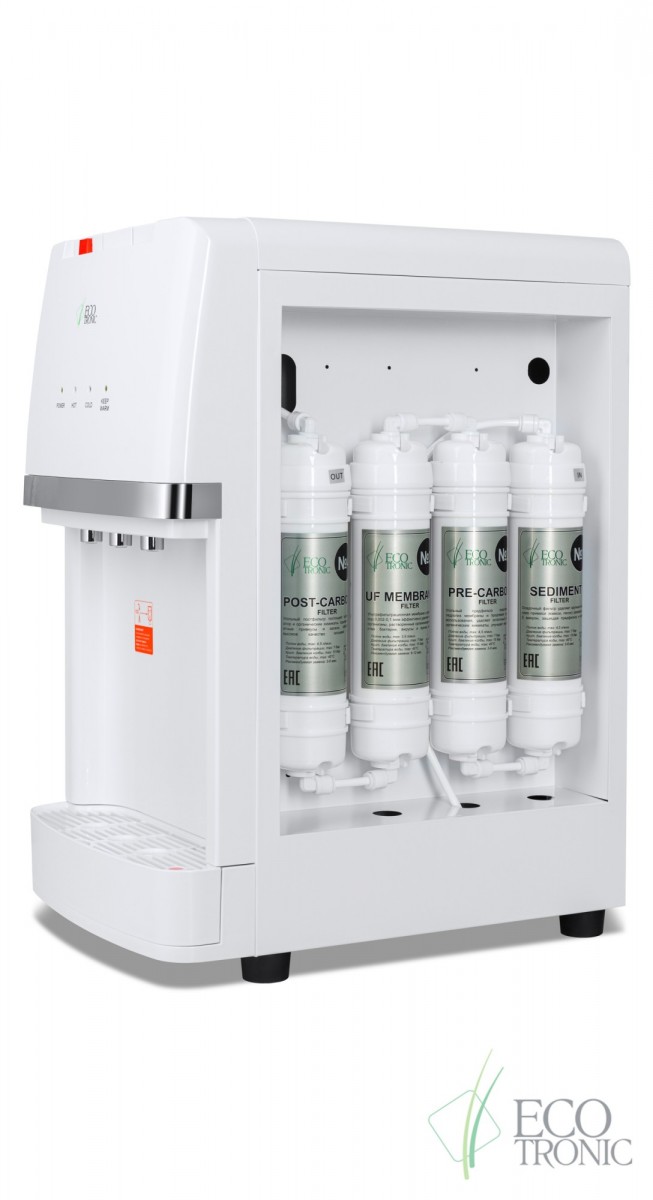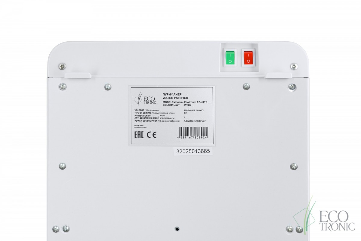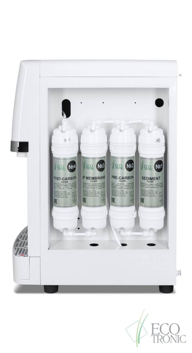 Пурифайер Ecotronic A7-U4TE (белый), нагрев/охлаждения, производительность нагрева 5 л/час, производительность охлаждения 1 л/час, мощность нагрева 500 Вт, мощность охлаждения 70-80 Вт.