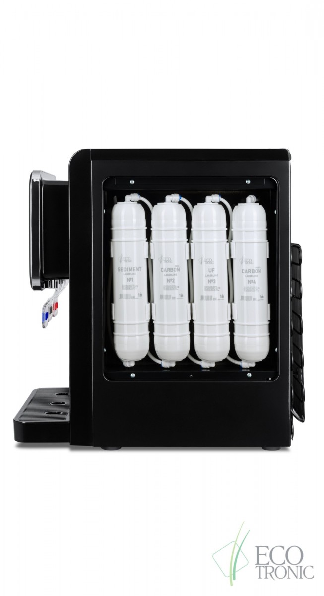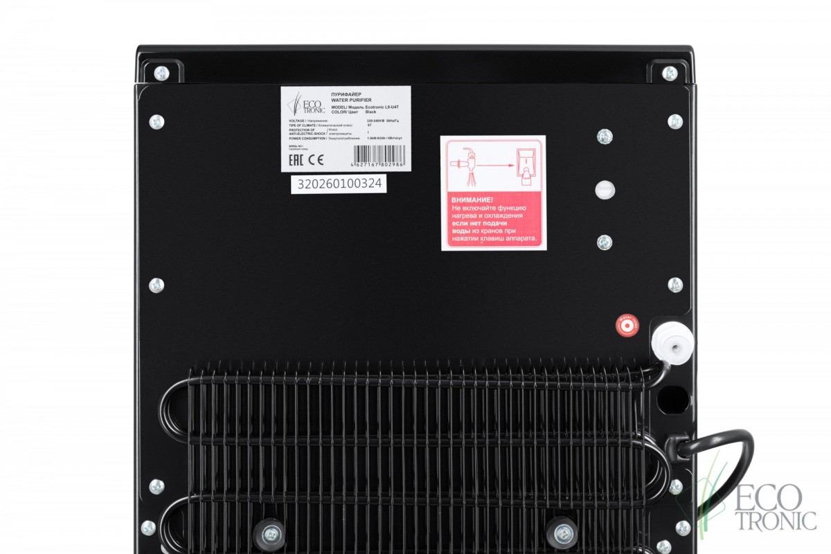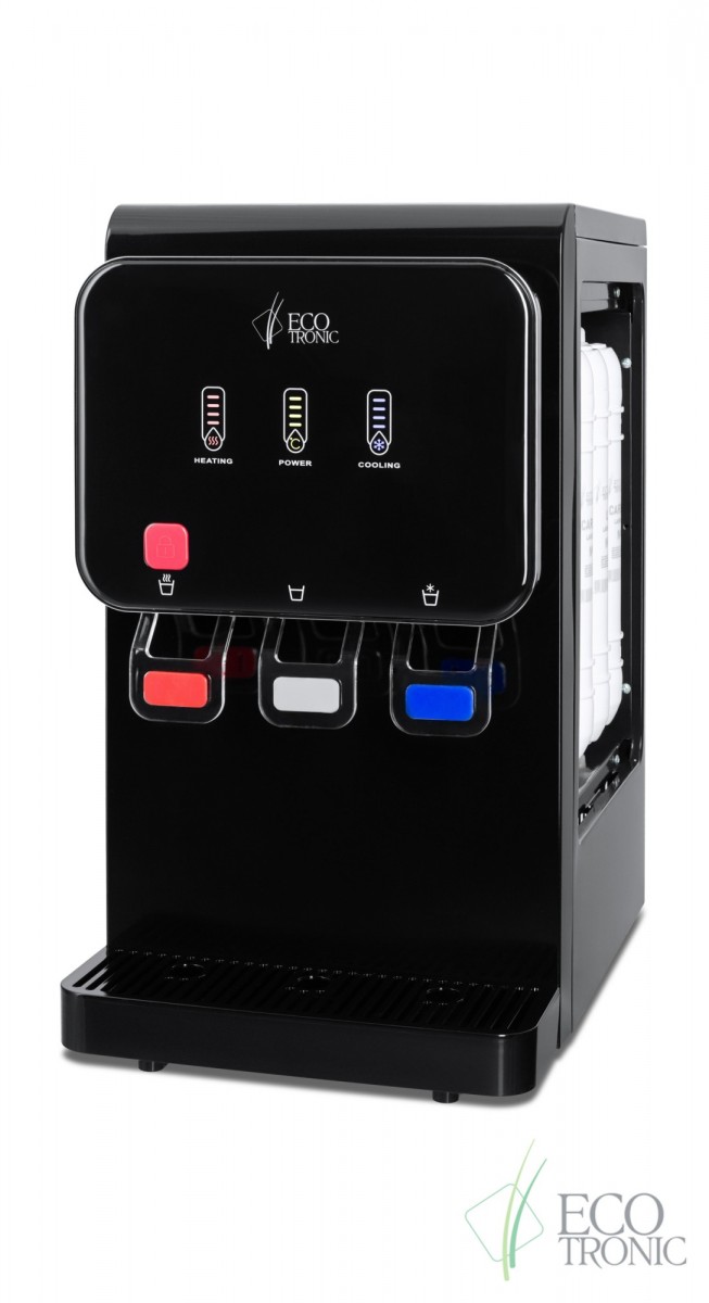 Пурифайер Ecotronic L9-U4T black, имеет функцию нагрева и охлаждения, производительность нагрева 5 л/ч, производительность охлаждения 2 л/ч, размещение настольное