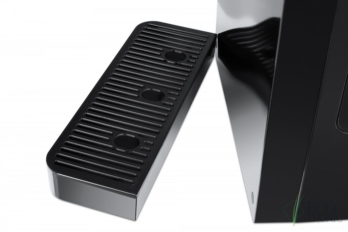 Пурифайер настольного типа с ультрафильтрационной системой очистки воды. Компрессорное охлаждение. Три крана типа "нажим кружкой": подачи горячей воды с защитой от детей, холодной воды и подачи воды комнатной температуры. Легкий доступ к фильтрам для замены. Лоток каплесборника фиксируется неодимовыми магнитами. Индикация работы пурифайера, нагрева и охлаждения воды. Корпус полностью черного цвета.
