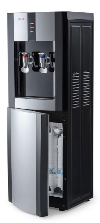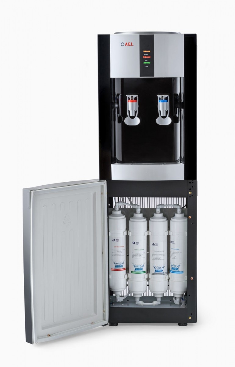 Представляем новинку в ассортименте АЕЛ - напольный пурифайер компрессорного типа с 4х UF-системой очистки. Модель комплектована удобными краниками нажим чашкой. Цвет: черный корпус с серебрянными вставками, серебряными кранами, боковые панели черного цвета.
