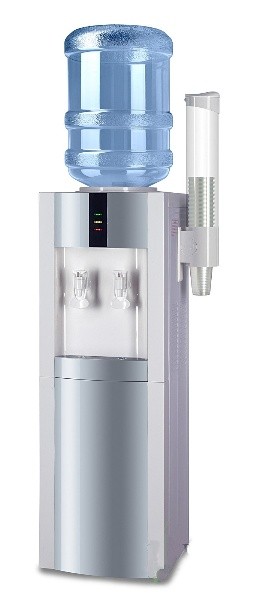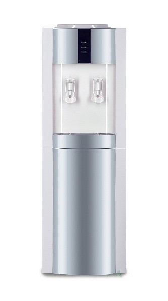 Раздатчик воды V21-LWD white-silver. Бюджетный вариант напольного раздатчика воды, без нагрева и охлаждения. Цвет белый с серебристой вставкой. Тип кранов подачи воды - "Нажим кружкой".