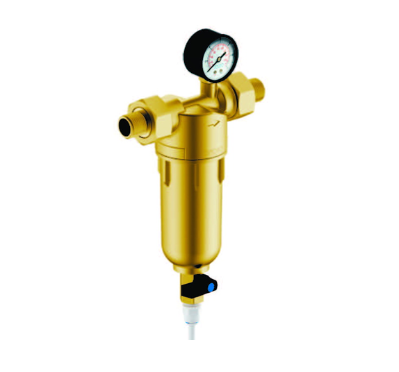 Гейзер Бастион 122 3/4" - магистральный фильтр из латуни, который комплектуется манометром для контроля над давлением очищенной горячей воды. Внутри изделия установлен картридж из нержавеющей сетки с ячейками, не пропускающими твердые примеси больше 90 мкм. Подключение осуществляется с помощью американок, которые имеются в комплекте. Фильтр оснащен устройством для промывки внутренней части, которое представлено шаровым краном. Достаточно его открыть, и поток воды вымоет загрязнения. Для их сбора можно использовать любую емкость, либо подключить трубку на вывод к канализации. Для этого в комплекте есть переходник с резьбы 3/8" на трубку 1/4".